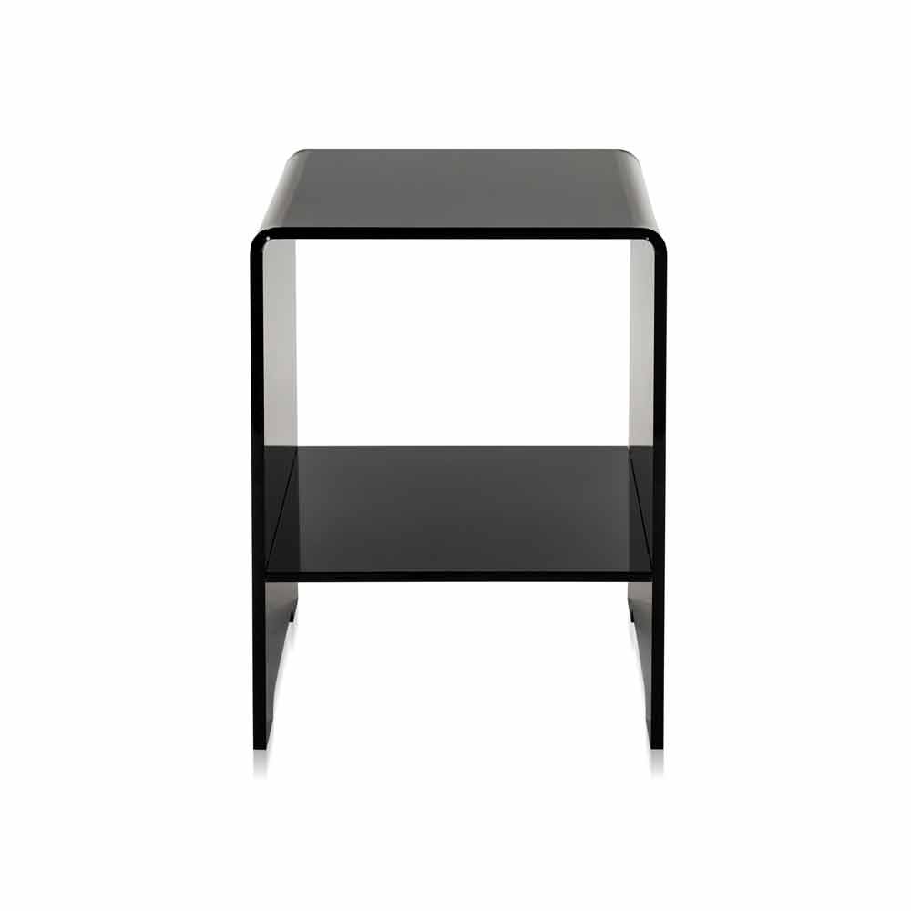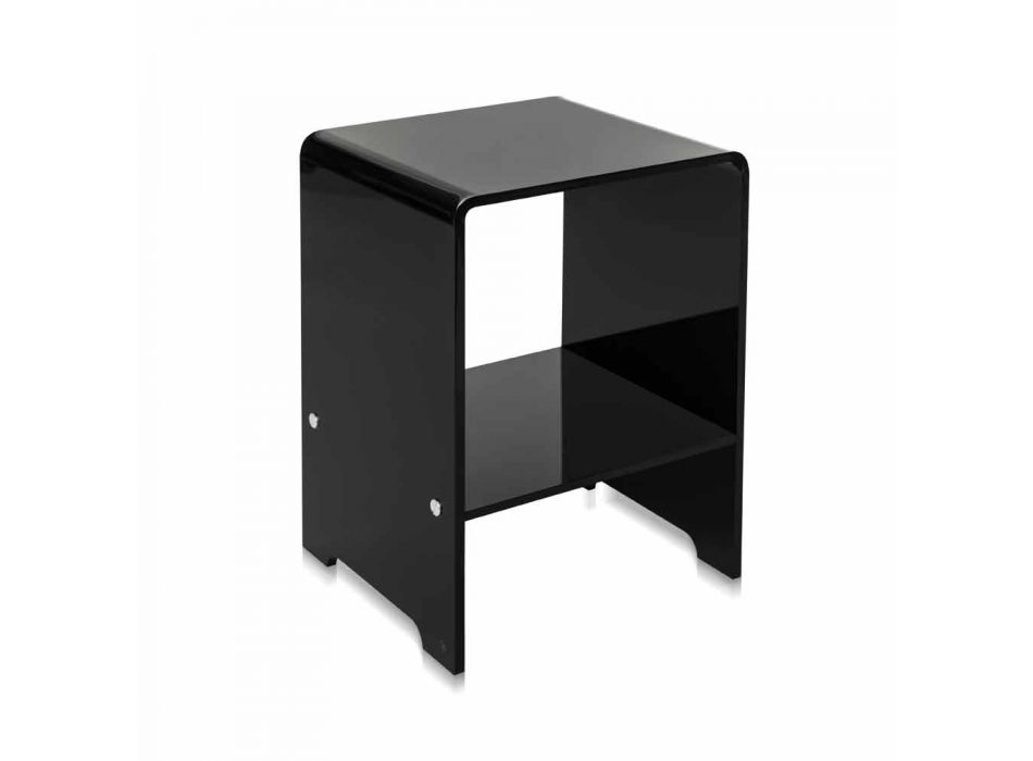 Mimi nowoczesny design czarny stolik kawowy / stolik nocny, wykonany we Włoszech Obok łóżka jako praktycznego stolika nocnego, obok sofy jako stolika kawowego, obok wanny jako wieszaków na ręczniki i kosmetyków: uniwersalny czarny blat o grubości 10 mm, 100% plexi z pierwotnego polimeru, cięcie laserowe i składanie w wysokich temperaturach. Ważna grubość sprawia, że konstrukcja jest całkowicie samonośna. Właściwości fizyczno-techniczne pleksi (odporne na wstrząsy, nieodkształcalne, niezmienne, termoizolacyjne) czynią ten artykuł praktycznym i funkcjonalnym meblem, odpowiednim dla każdego otoczenia. Jasność i jasność są utrzymywane na stałym poziomie i niezmienione w czasie. Pleksi PMMA z pierwotnego polimeru jest nietoksyczny, hipoalergiczny, bezwonny i antybakteryjny. 100% do recyklingu. Zaprojektowany, zaprojektowany i wyprodukowany we Włoszech z włoskimi materiałami.