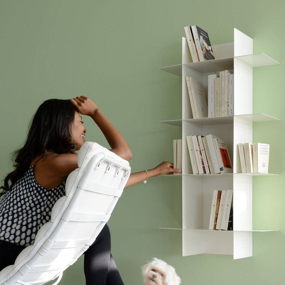 Rezultatem jest liniowy i czysty produkt , jednocześnie z cienkimi i mocnymi liniami, co pozwala na zabawę kolorami: na zamówienie faktycznie można zróżnicować kolorystykę modułu nośnego od kolorów półek, tworząc w ten sposób różne sytuacje chromatyczne w zależności od mebli.