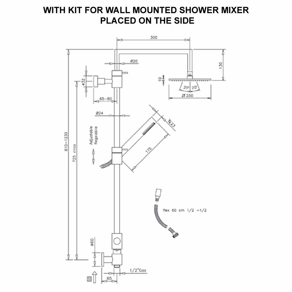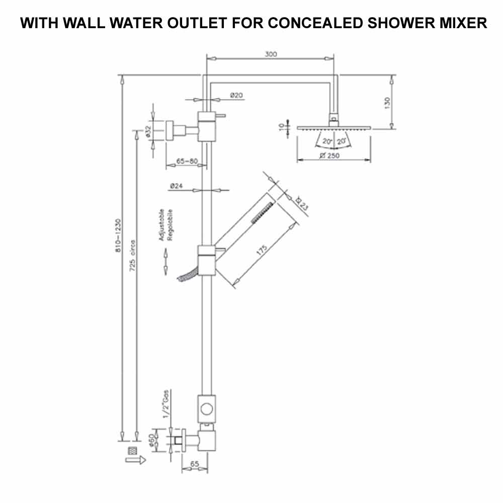 - z zestawem do zewnętrznej baterii natryskowej kwadratowej umieszczonej z boku;