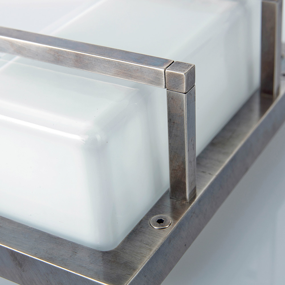 Prosty i elegancki, ten ręcznie wykonany kinkiet to wyrafinowane rozwiązanie oświetleniowe, zaprojektowane z myślą o podkreśleniu nowoczesnych ścian i nowoczesnych przestrzeni. Odlewana mosiężna konstrukcja w połączeniu z prostokątnym opalowym kloszem ze szkła tworzy miękkie, równomierne światło, idealne do oświetlenia gościnnego i funkcjonalnego.