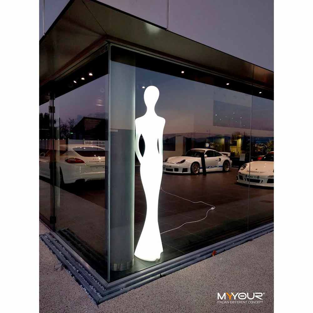 Lampa o silnej osobowości do wnętrz i na zewnątrz, oryginalna, ale jednocześnie funkcjonalna dzięki wykonaniu w Poleasy, ekskluzywnego materiału Myyour , który zapewnia niepowtarzalną zmywalność i trwałość.