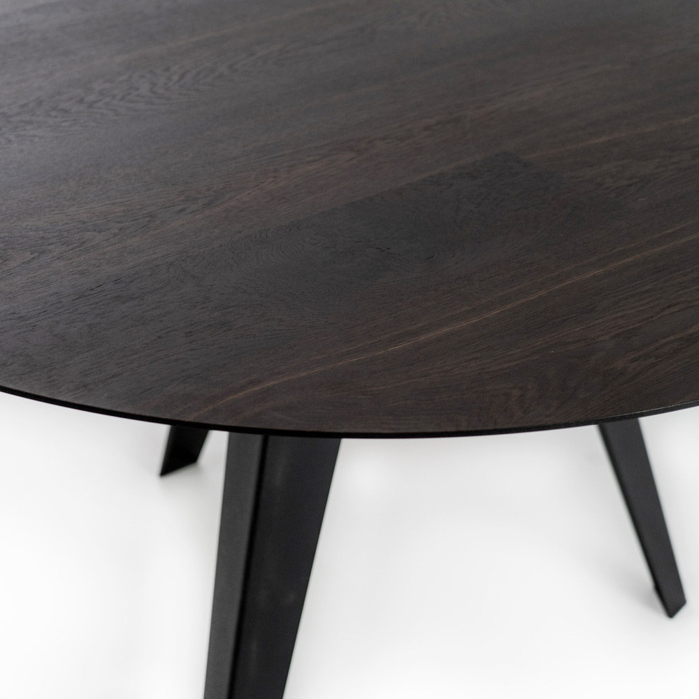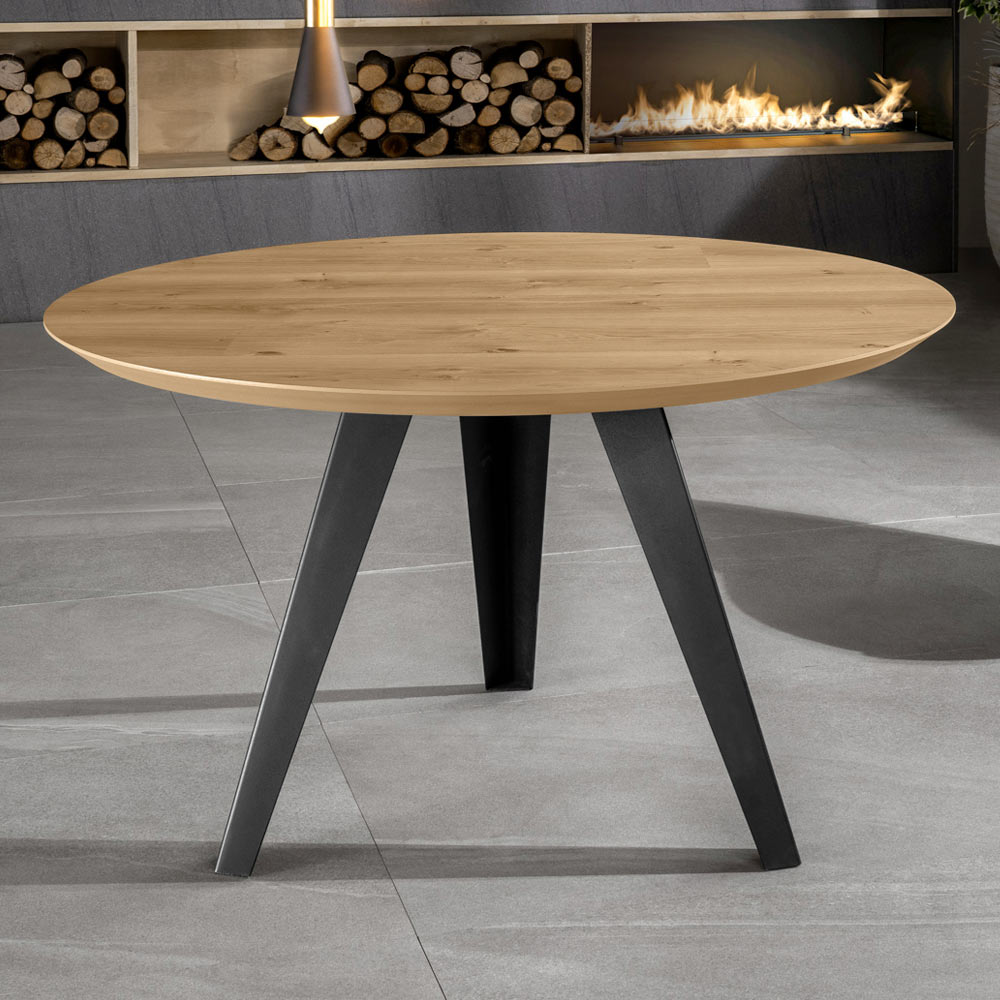 Okrągły stół jadalny z forniru dębowego i metalu