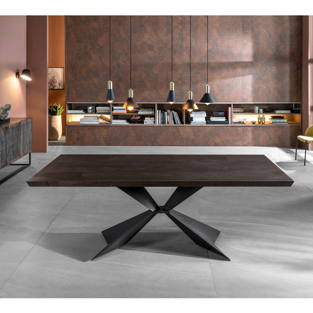 Stół ten dzięki kształtowi nóg nadaje pomieszczeniu nowoczesny i elegancki akcent, który doskonale komponuje się z klasycznymi odniesieniami do drewna, zaspokajając w ten sposób różne potrzeby stylu i designu. Jest to stół, który staje się bohaterem salonu, czy to kuchni, czy salonu, zapewniając klientowi wyjątkowe i niezapomniane chwile towarzyskie.