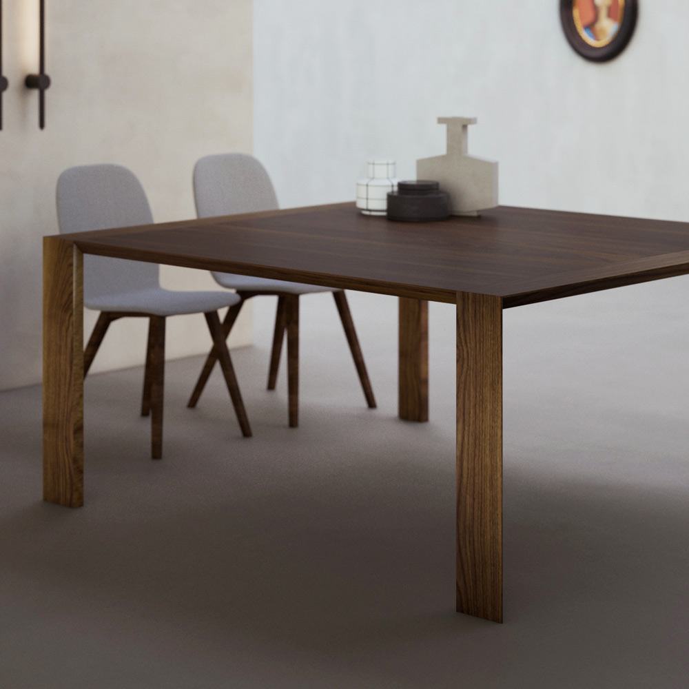 Stały stół z blatem fornirowanym na płycie wiórowej z topoli orzechowej Made in Italy.