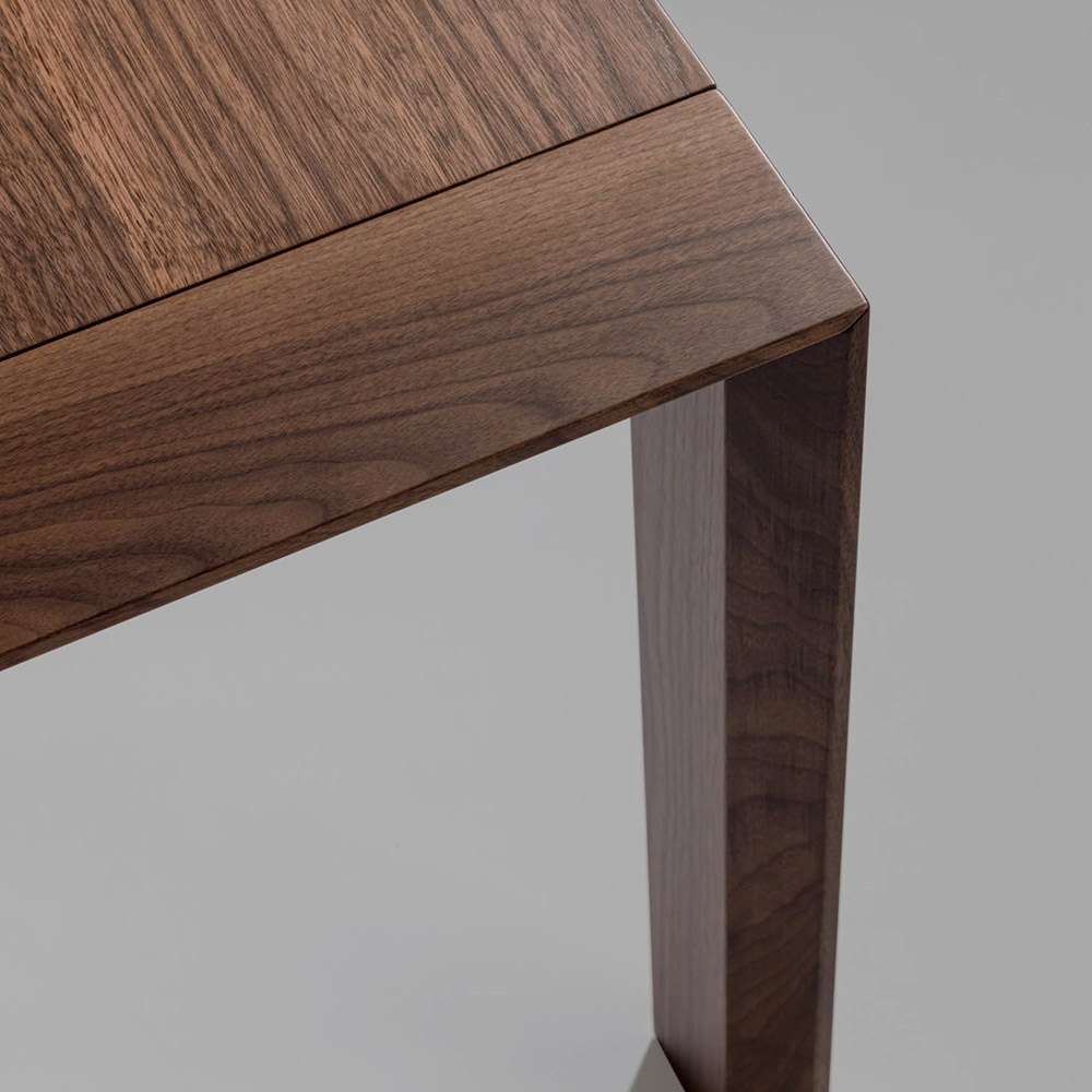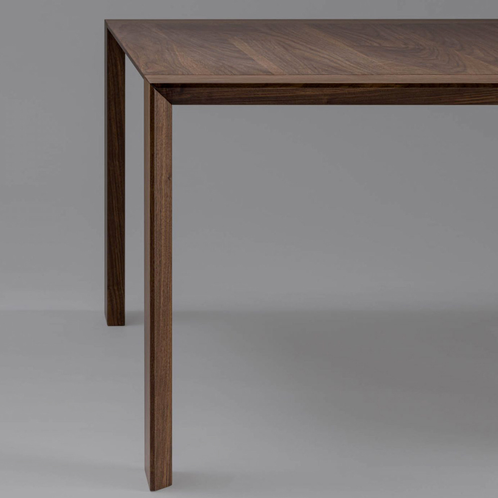 Stół stały ze ściętymi nogami fornirowanymi laminatem i blatem fornirowanym płytą wiórową topolową w kolorze orzecha canaletto .