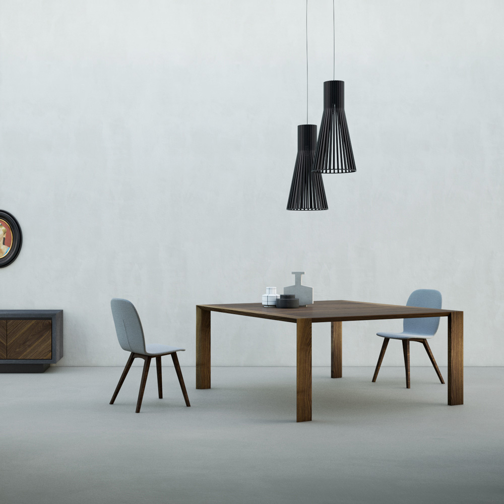 Stół kształtują futurystyczne kształty, które rozświetlają istotę, nadając jej charakterystyczne linie i perspektywy. Solidność materiałów przekłada się na twórczy impuls wykuty przez wprawne włoskie ręce, osiągający nowe cele jakościowe i estetyczne. Meble stają się środkiem do osiągnięcia idealnej przestrzeni osobistej.