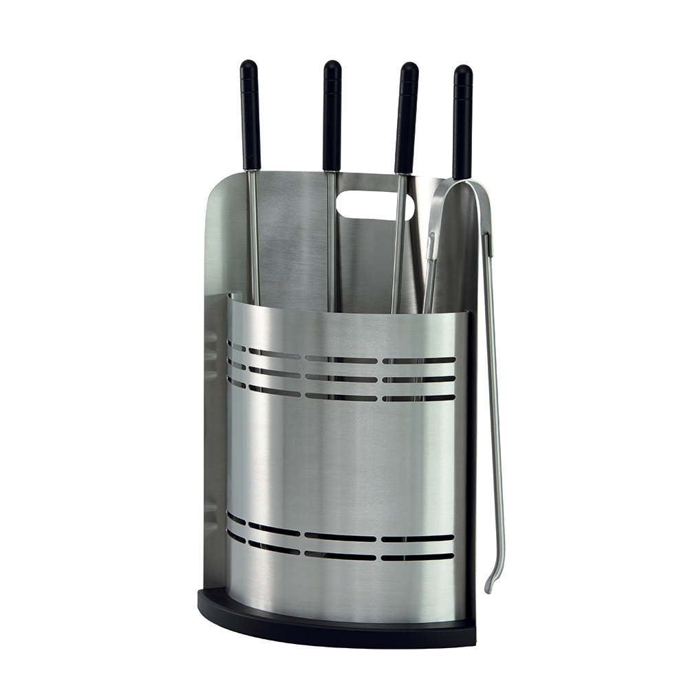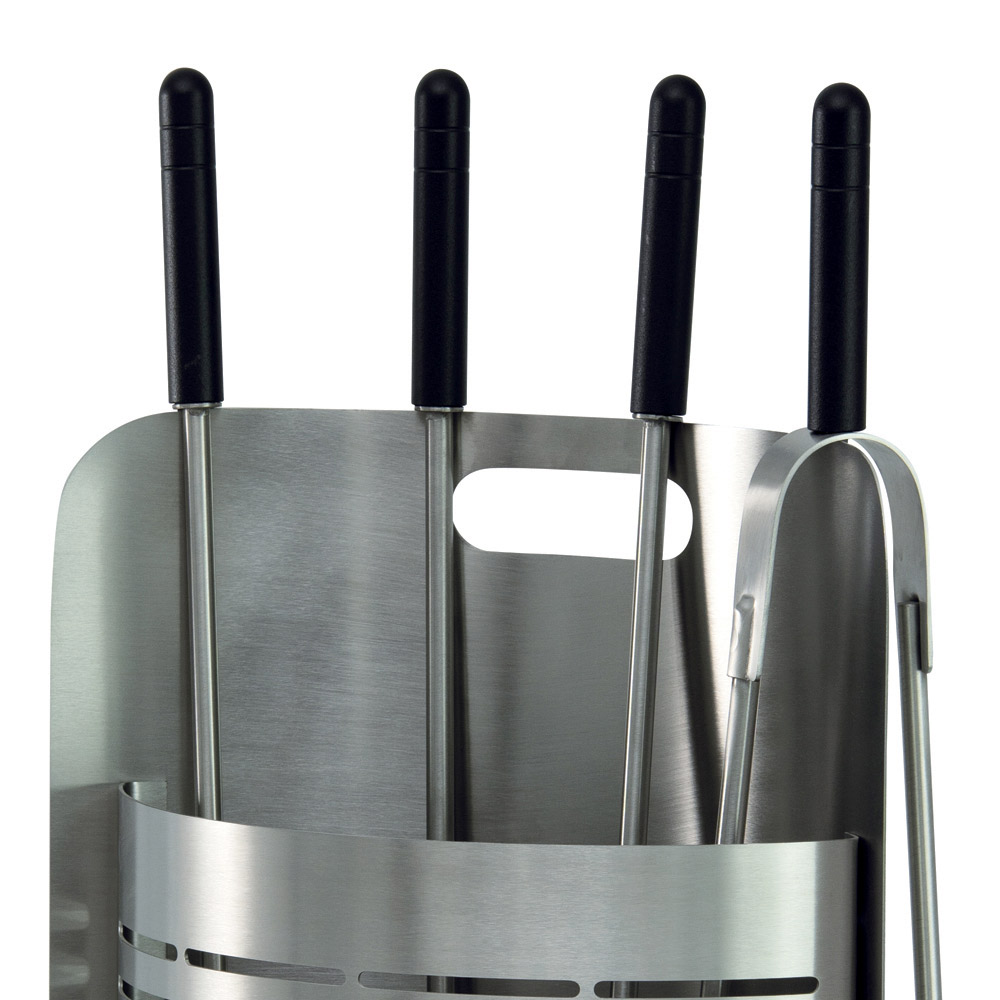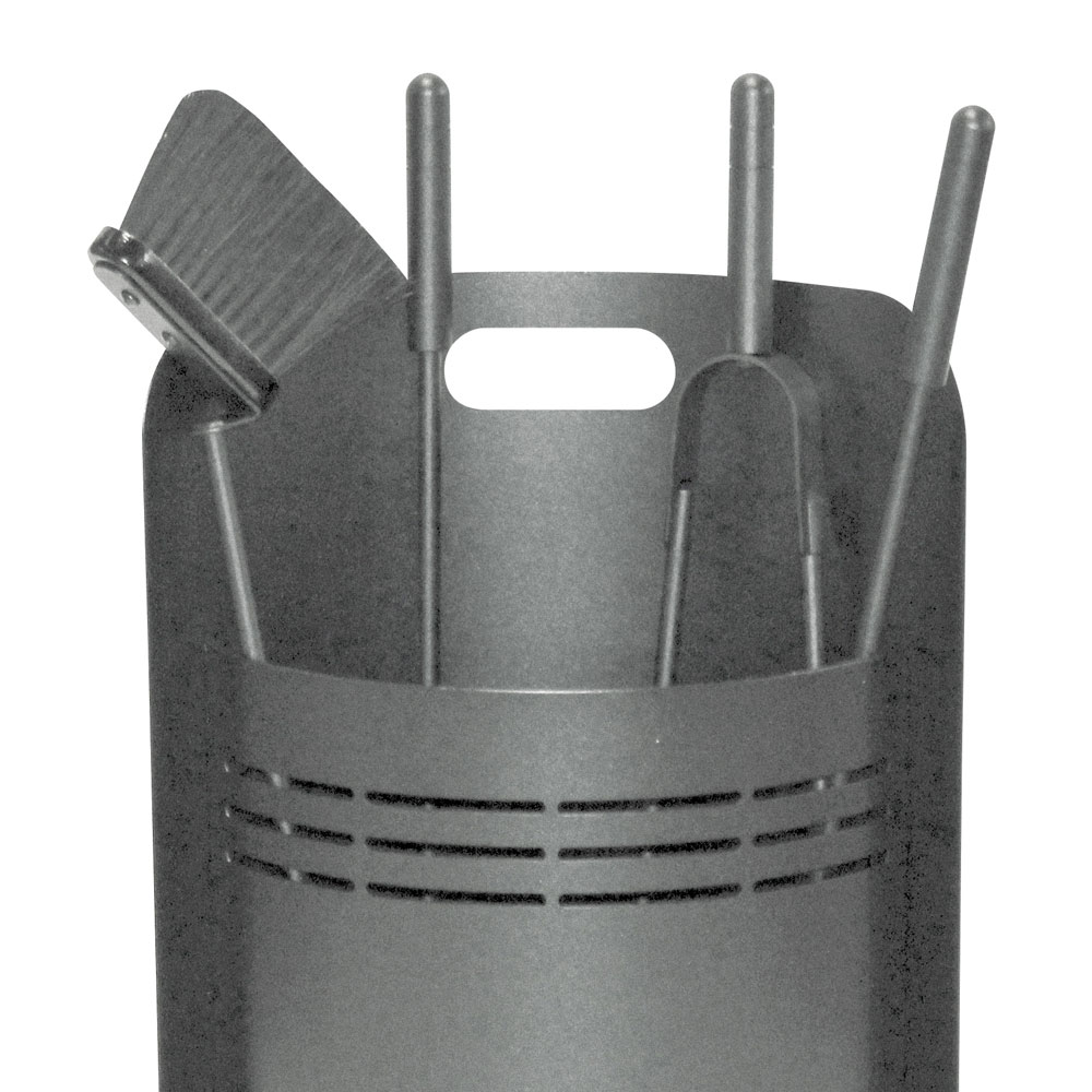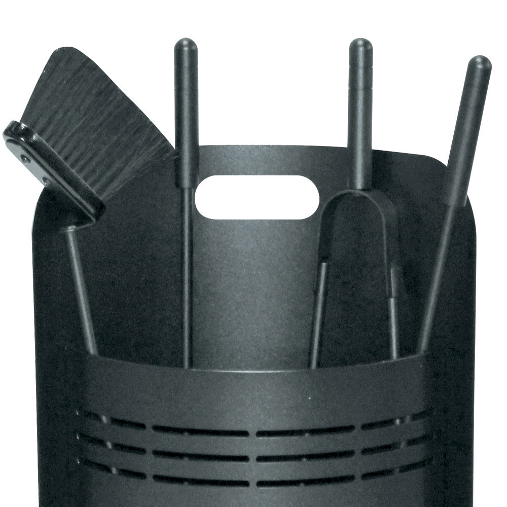 W zestawie znajdują się 4 akcesoria niezbędne do podtrzymania ognia i czyszczenia kominka. Obecność uchwytu na górze pozwala łatwo podnieść cały uchwyt narzędziowy i przenieść go w dowolne miejsce. Jego konstrukcja jest funkcjonalna, ale nie zaniedbuje estetyki, z czystymi liniami i solidną konstrukcją, która czyni go trwałym i stylowym elementem w domu.