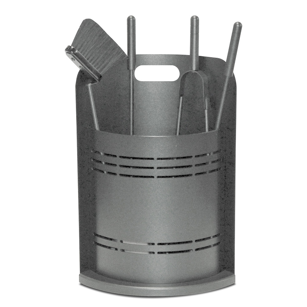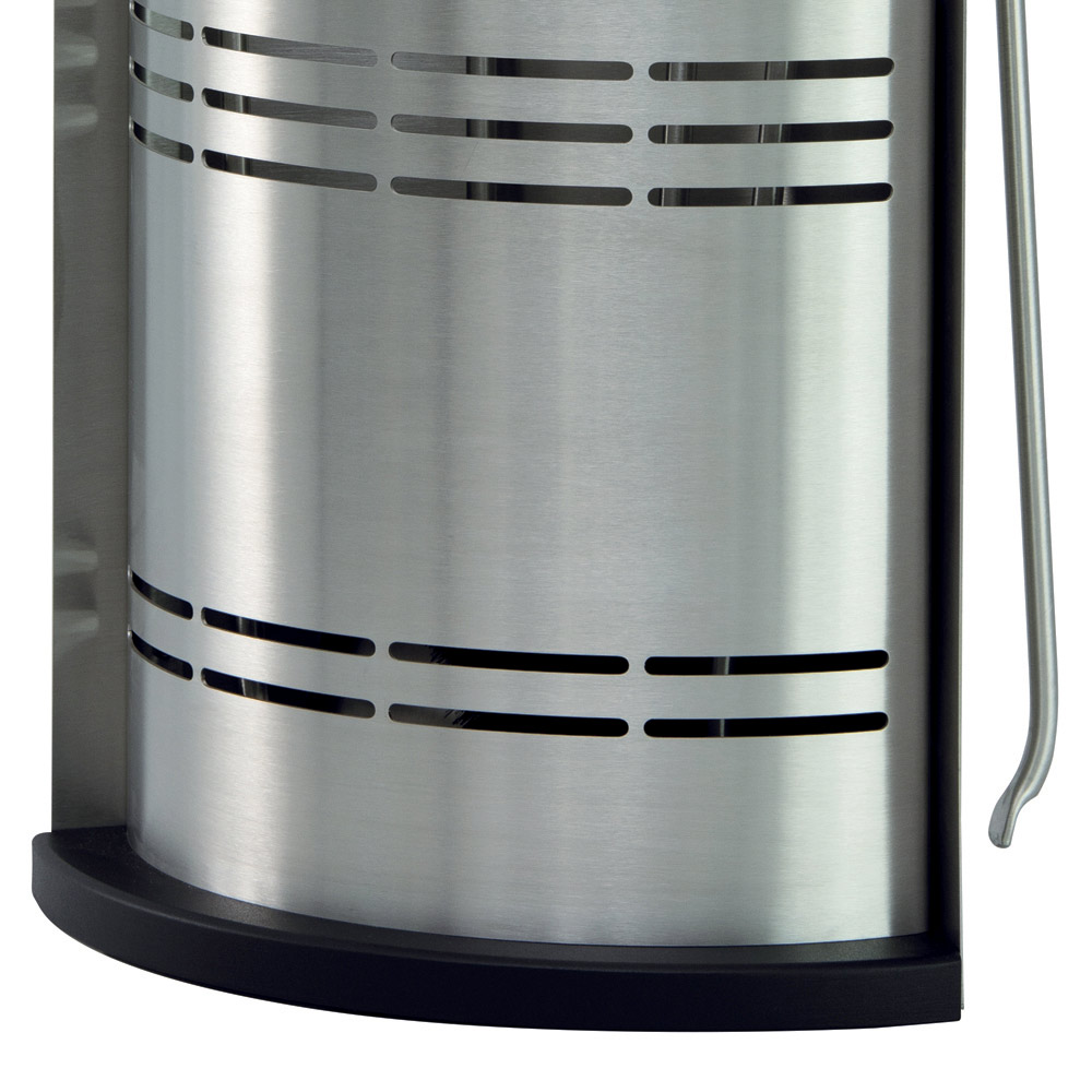 Ten uchwyt na narzędzia kominkowe jest idealny dla tych, którzy szukają odrobiny współczesnego designu . Jego cylindryczny kształt jest elegancki i oszczędza miejsce, a poziome szczeliny nie tylko tworzą przyciągający wzrok detal wizualny, ale także zapewniają odpowiednią wentylację sprzętu.