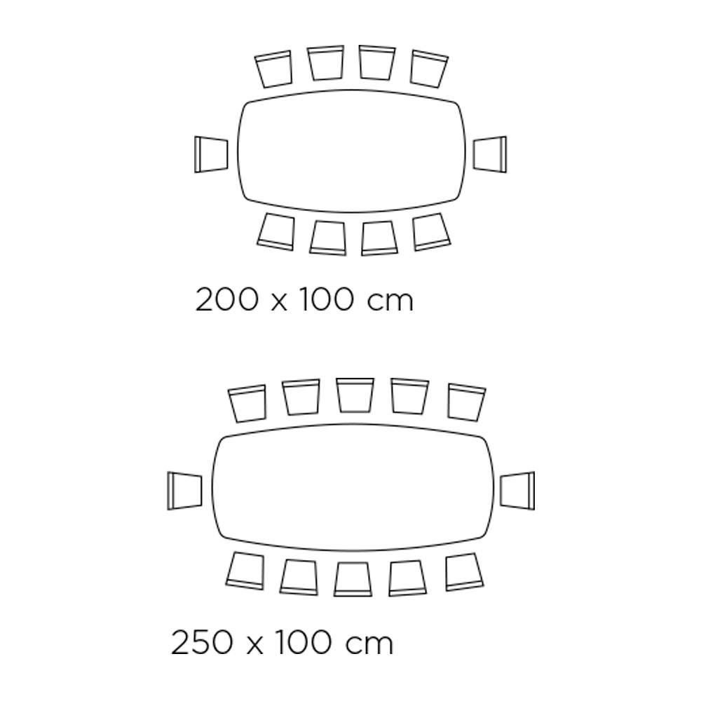 - długość 250 cm x głębokość 100 cm x wysokość 73,5 cm