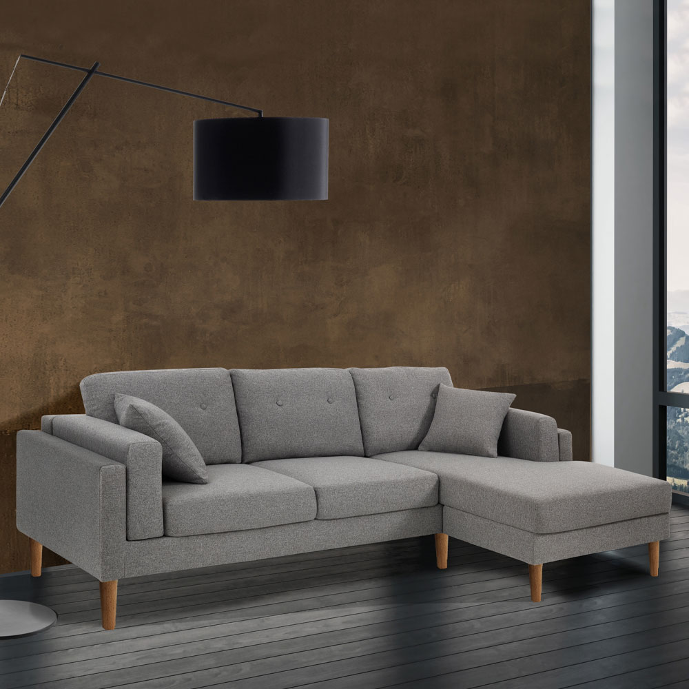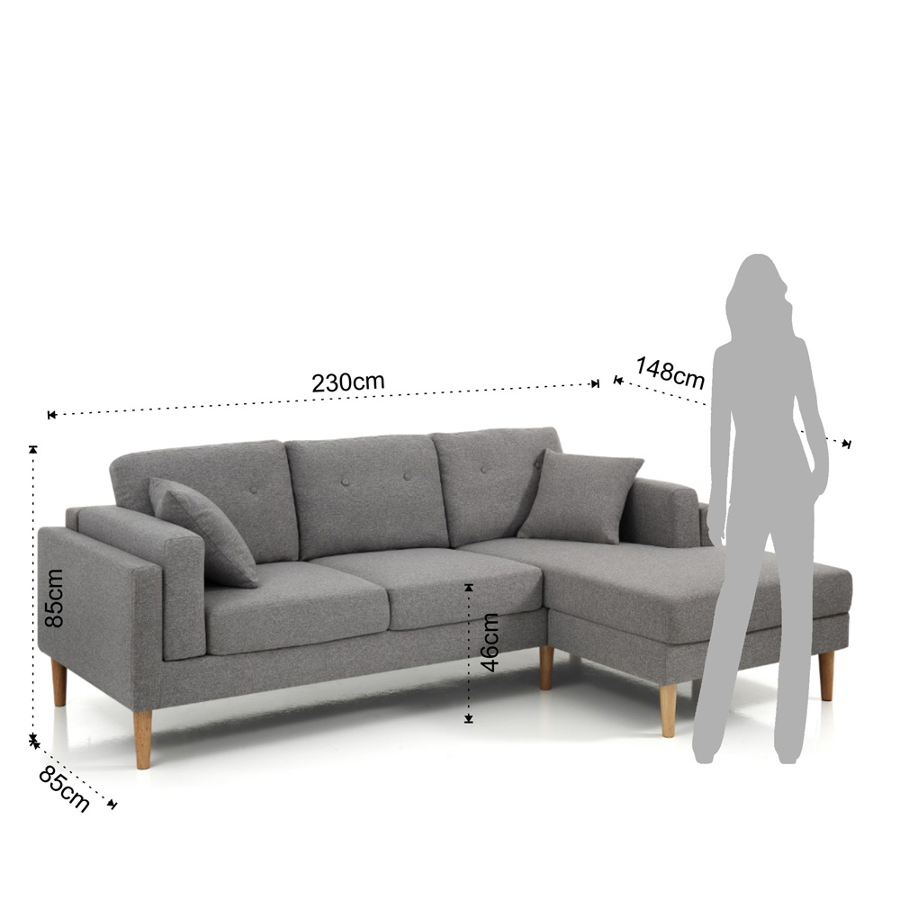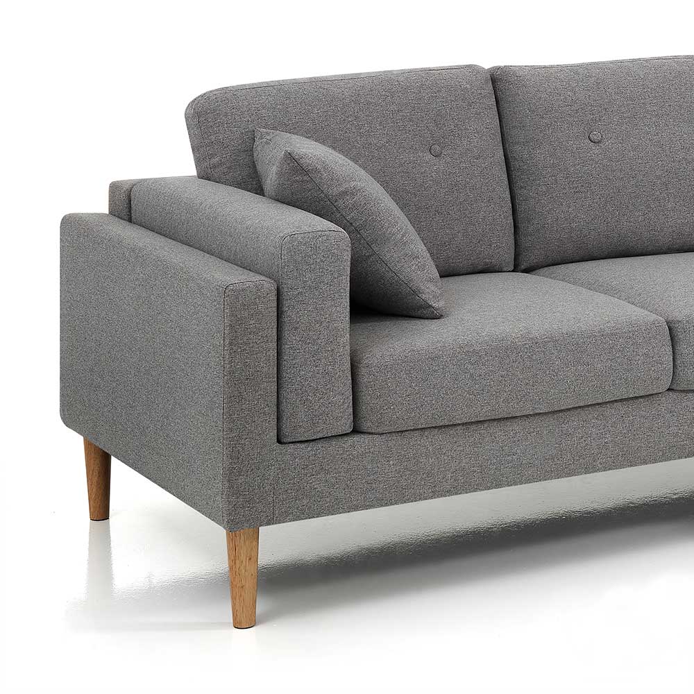 pokrytego szarą tkaniną z częściowo zdejmowanymi pokrowcami (tylko poduszki oparcia), nóżkami z