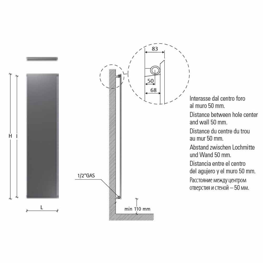 Pionowy hydrauliczny grzejnik ścienny o nowoczesnym designie wykonany we Włoszech.