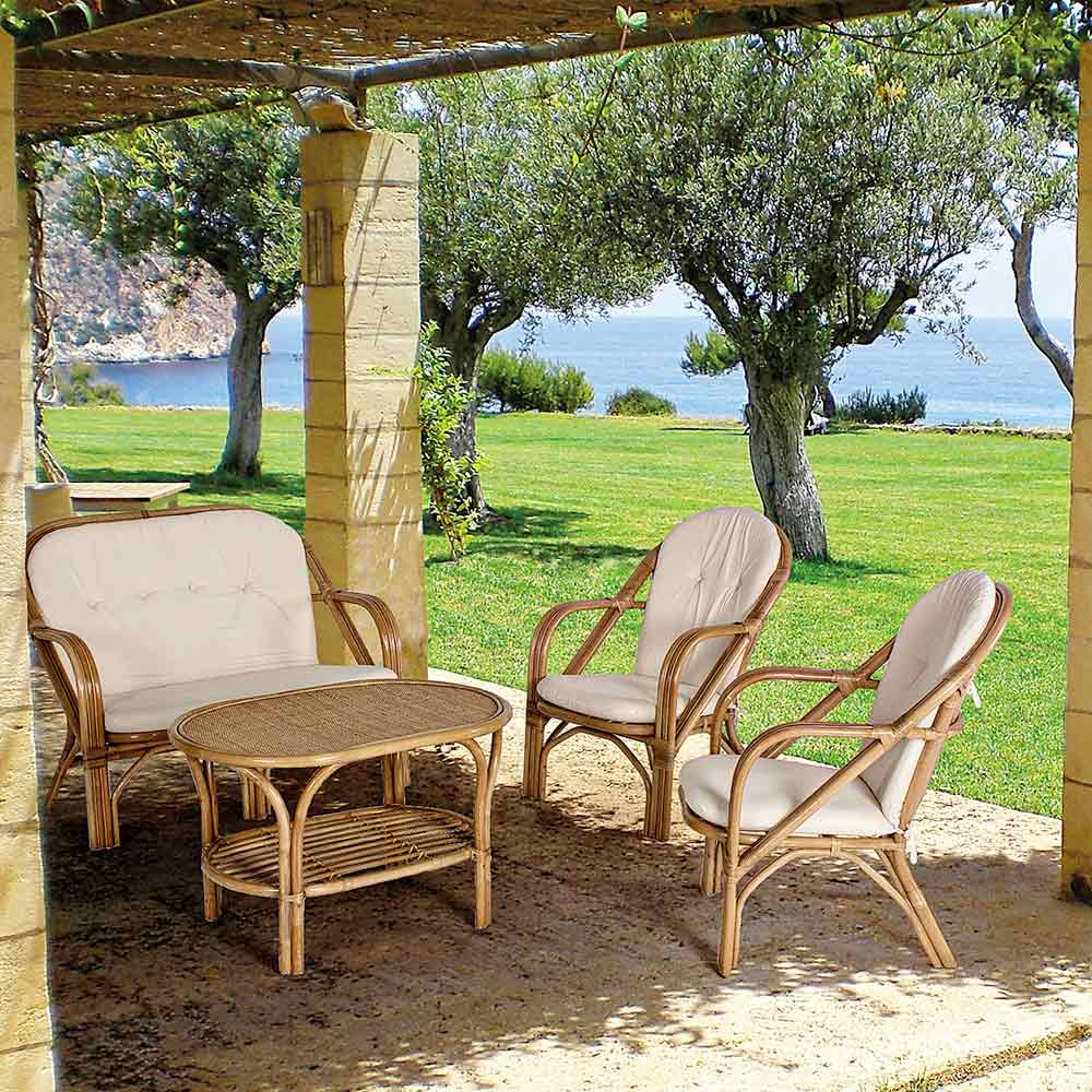 Fotel ogrodowy z naturalnego rattanu ze zdejmowaną poduszką - Maurizia