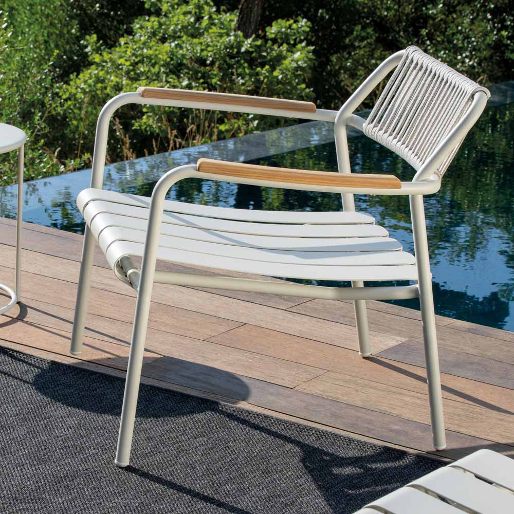 Lekka, ale solidna konstrukcja została zaprojektowana tak, aby zapewnić najlepszy komfort, z ergonomicznym siedziskiem i wyprofilowanym oparciem z liny , które zapewniają wygodne i relaksujące podparcie. Aluminiowe listwy nadają dynamiczny i nowoczesny wygląd, a wykończenie dodaje odrobinę elegancji i wyrafinowania.