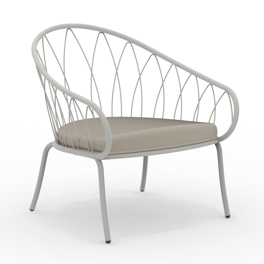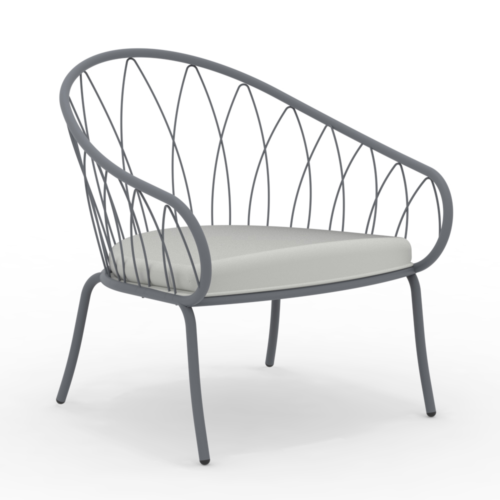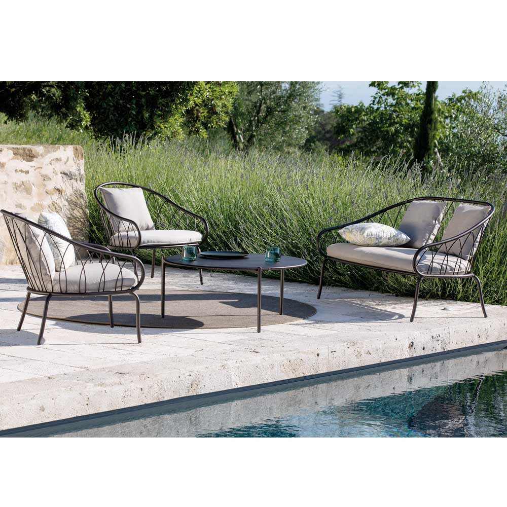 Niski fotel ogrodowy z ocynkowaną żelazną konstrukcją malowaną proszkowo i siedziskiem z tkaniny Wyprodukowano we Włoszech