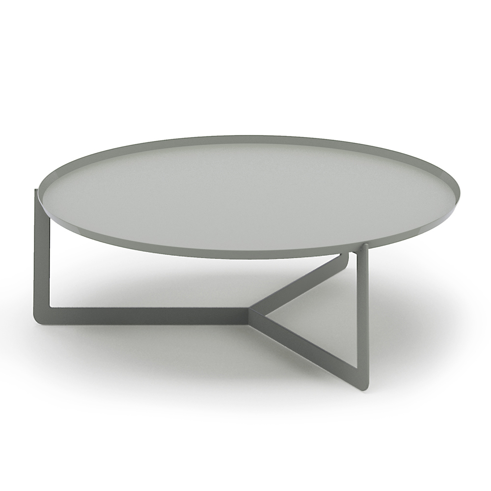 okrągły stolik kawowy na zewnątrz z trzema podstawami jest w całości wykonany z