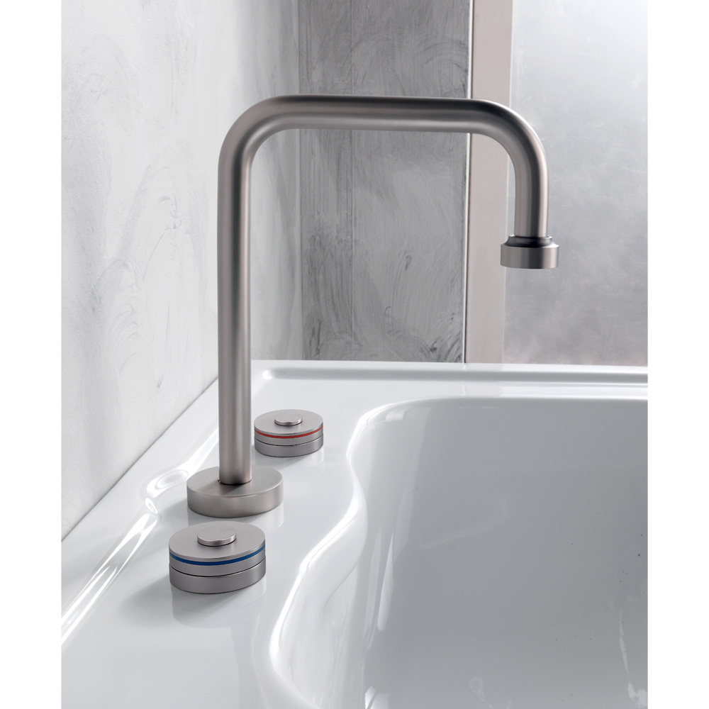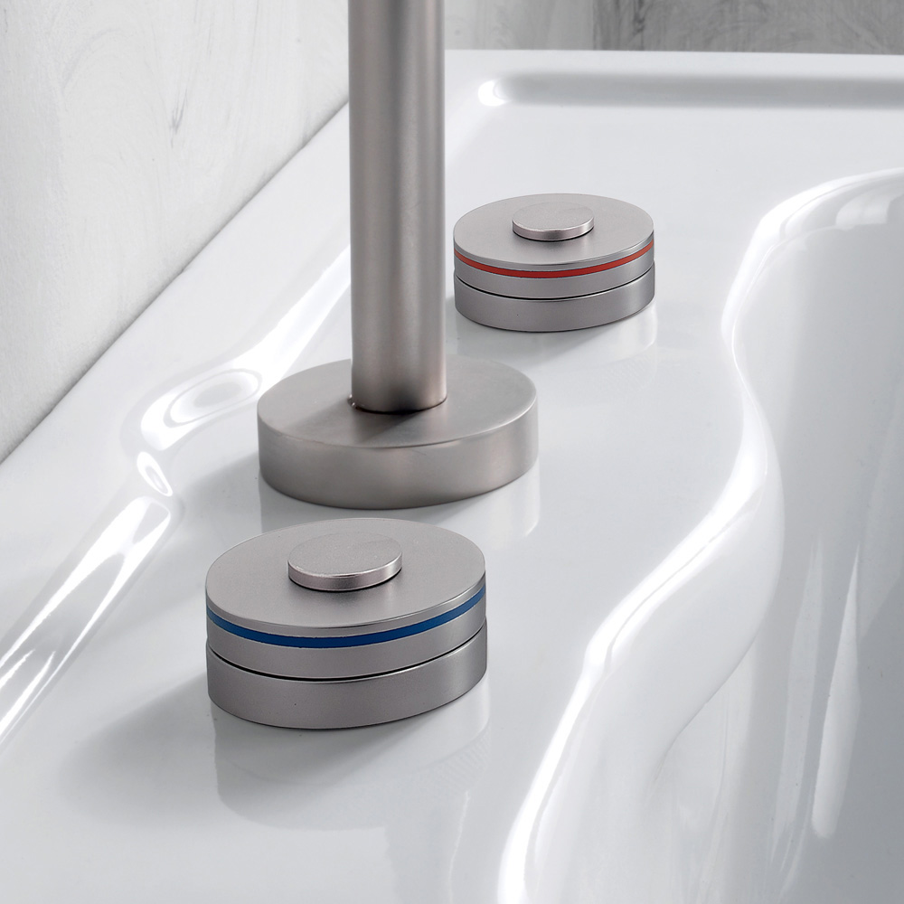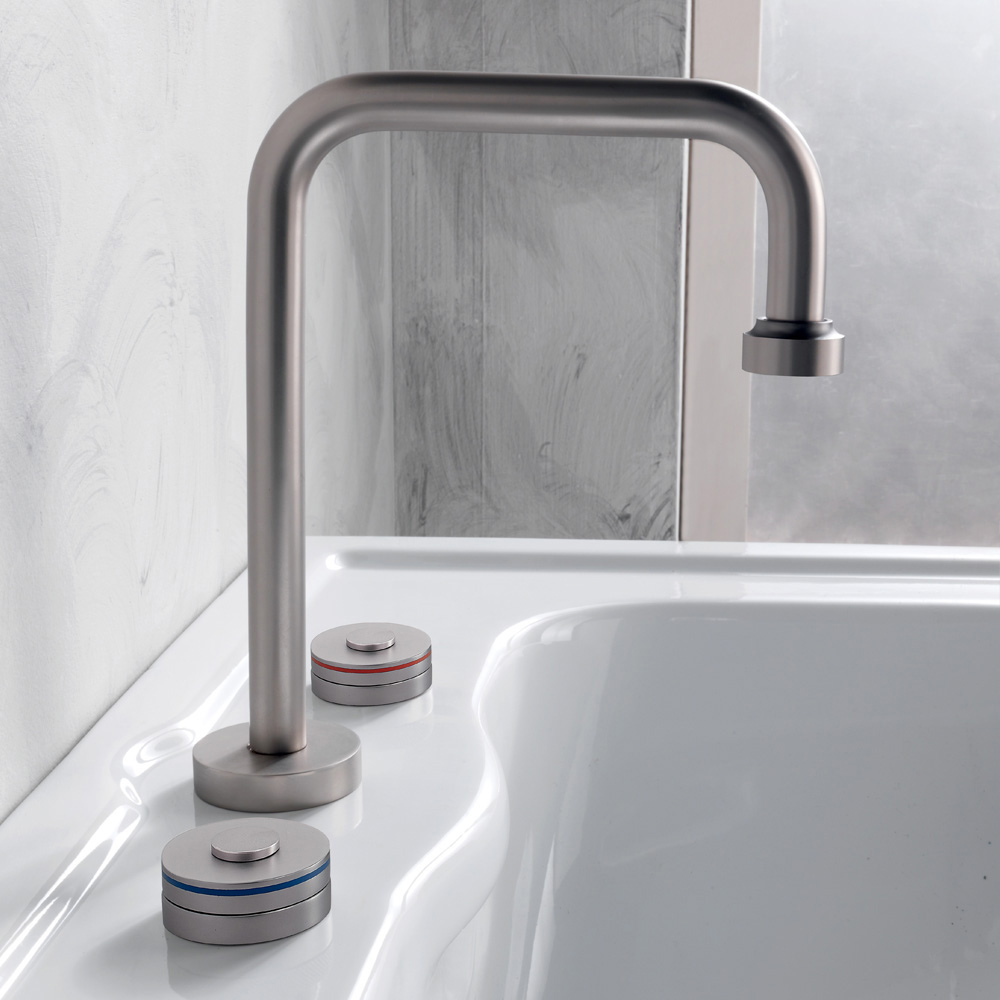 Nowoczesna 3-otworowa mosiężna bateria umywalkowa z odpływem Made in Italy