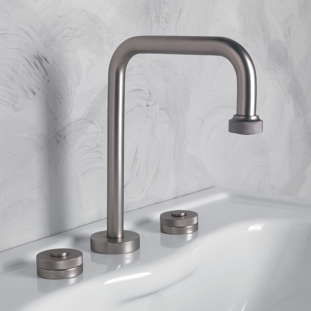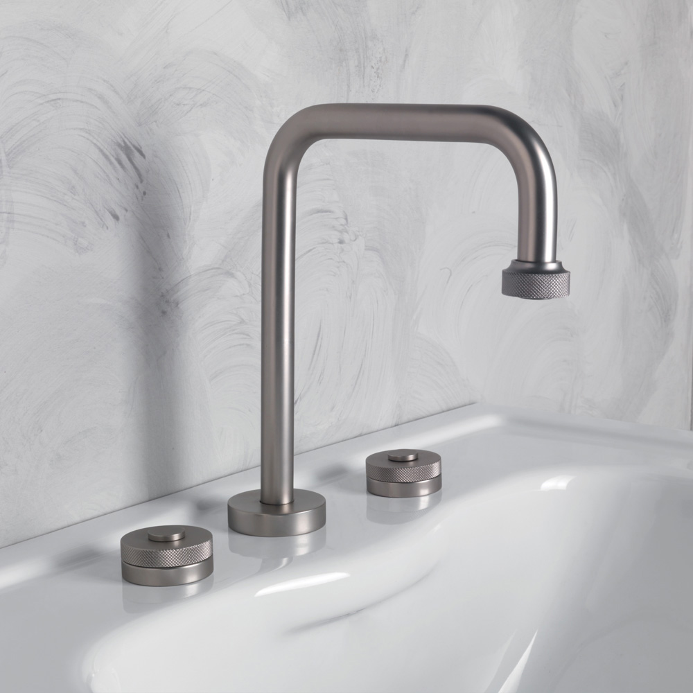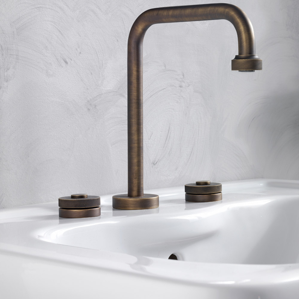 Nowoczesna 3-otworowa mosiężna bateria umywalkowa z odpływem Made in Italy