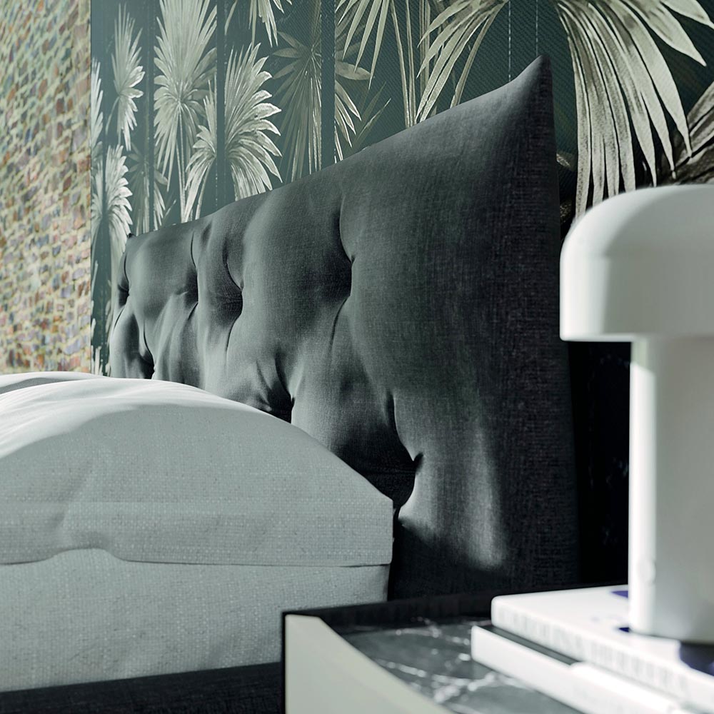 ważną i imponującą prezencją oraz szczególną obróbką, która porusza miękkość wezgłowia, podbijając strefę sypialną swoją