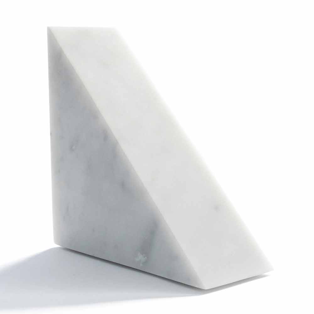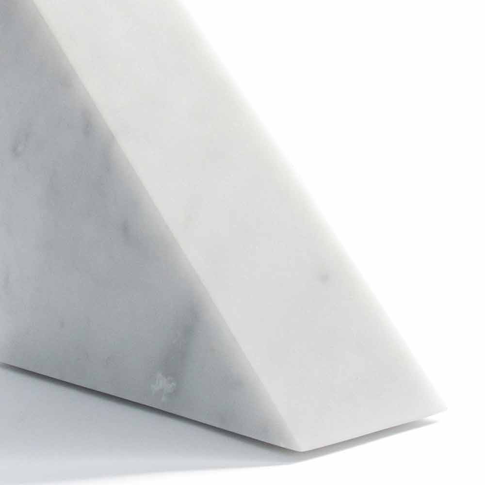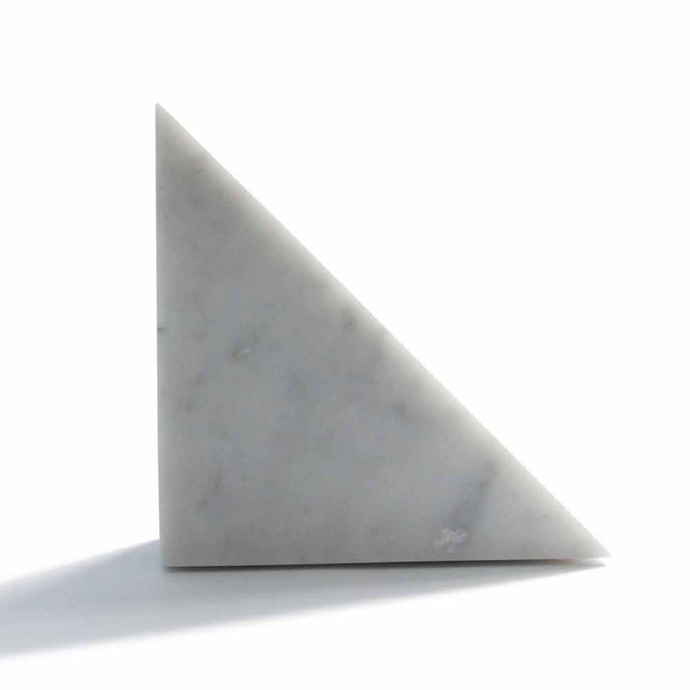 Trójkątny przycisk do papieru, który jednocześnie łączy w sobie funkcjonalność i elegancję. Wykonany z białego marmuru Carrara . Jest to wyjątkowy kawałek, ponieważ każdy użyty blok marmuru różni się od pozostałych żyłkami i odcieniami.