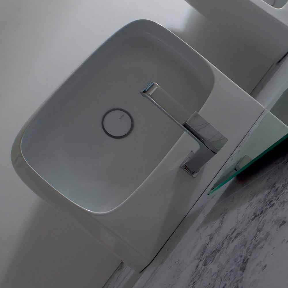Umywalka Gais może być montowana na blacie lub podwieszana. (Zestaw mocujący do montażu podwieszanego nie jest dołączony.)