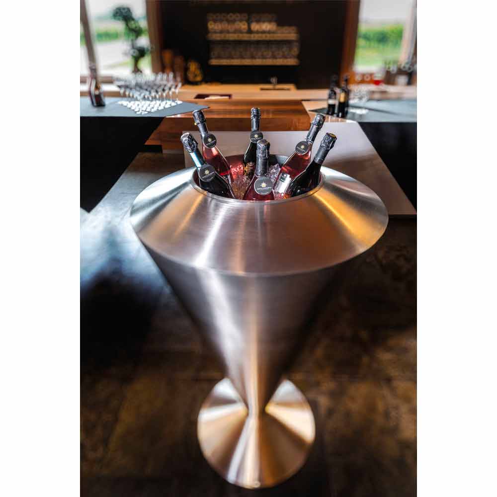 Podłoga Frappeuse wykonana w całości we Włoszech ze stali nierdzewnej z uchwytem na butelkę z lodem. Idealny do wyposażenia barów, restauracji, ale także pomieszczeń domowych przeznaczonych do spożywania posiłków, ten mebel jest zarówno nowoczesny, jak i funkcjonalny, oferując idealne rozwiązanie do utrzymania temperatury win, które oferują zimno, jednocześnie wzbogacając otaczające meble. Zastosowanie stali maksymalizuje jej wydajność, jednocześnie pozwalając na dostosowanie się do każdej sytuacji stylistycznej w harmonijny i nienaganny sposób, uzyskując jednocześnie oryginalny i dyskretny efekt . Aby zwiększyć jego wartość, należy przetworzyć 100% Made in Italy wraz z użyciem wysokiej jakości surowców, które podnoszą jego wartość i zapewniają solidny, wytrzymały produkt o doskonałej trwałości .
