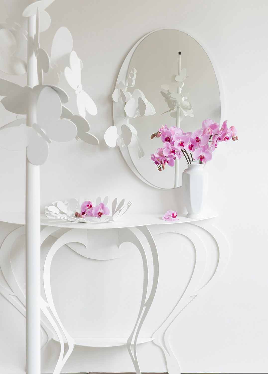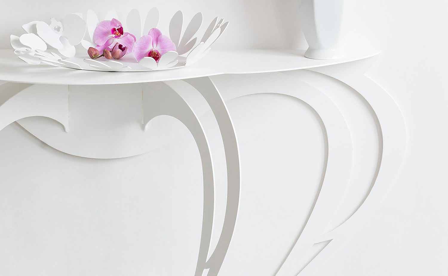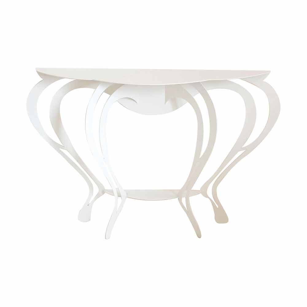 Barbata to niedopuszczalna konsola do salonu z zakrzywionymi i harmonijnymi liniami, które czynią ją szczególnie wyjątkową. Wyposażony w szczeliny z tyłu do przymocowania go do ściany i wykonany ręcznie we Włoszech z żelaza.