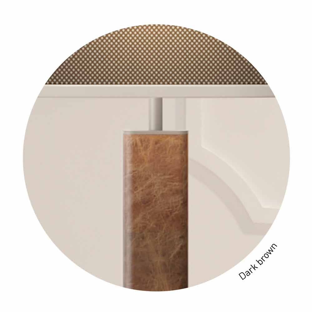 - srebrny lux metal, ciemnobrązowa skóra i brązowa siatka;