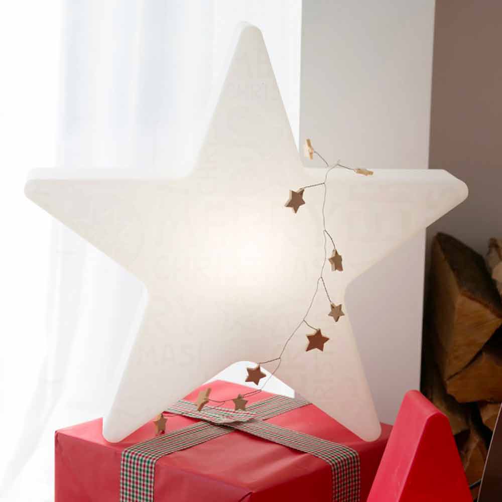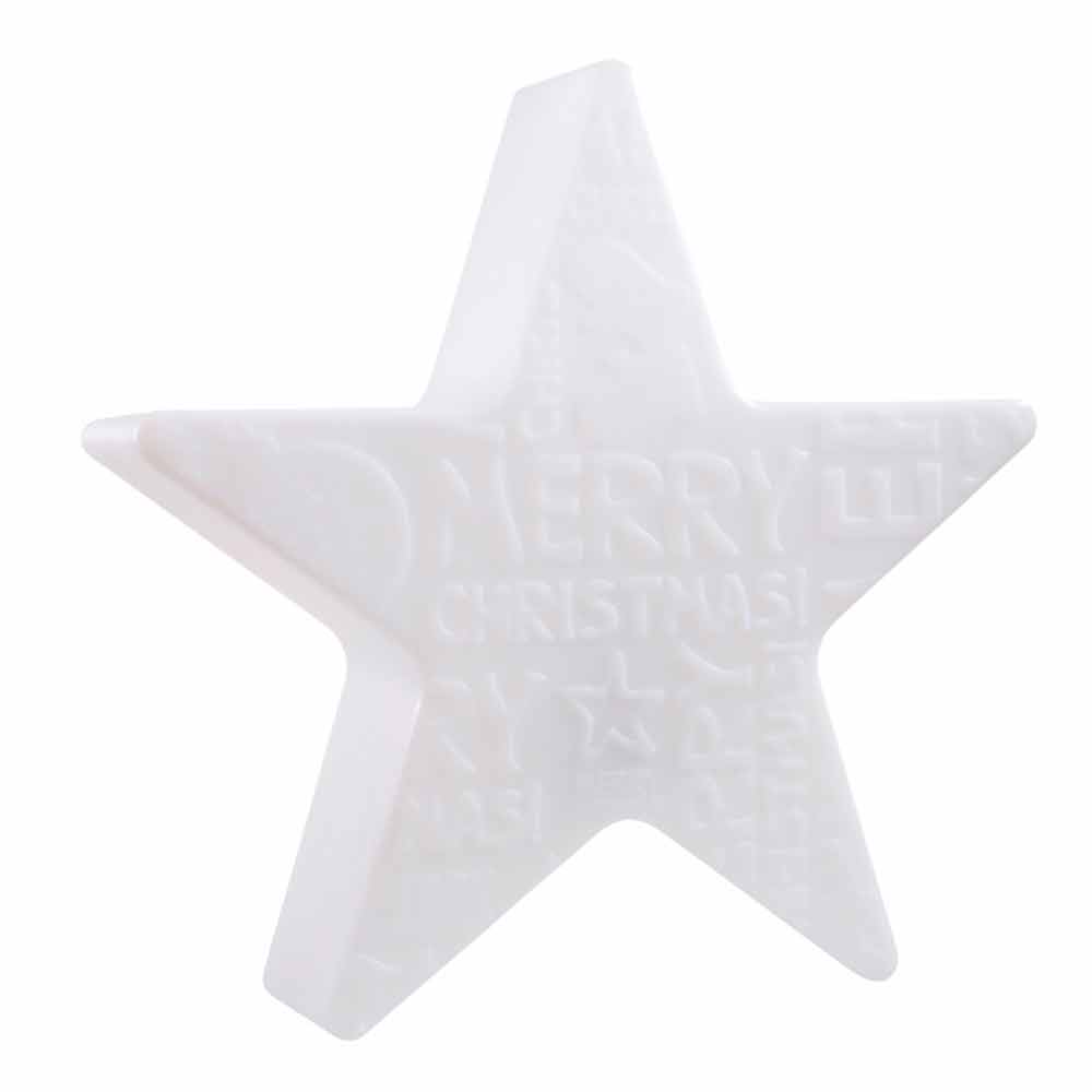 Ta lampa stołowa do wnętrz lub na zewnątrz charakteryzuje się przyciągającym wzrok wzorem w kształcie gwiazdy z wypukłym napisem o tematyce bożonarodzeniowej z przodu, podczas gdy tylna strona pozostaje gładka. Dekoracyjny punkt świetlny, który zachwyca duszę i serce oraz tworzy błyszczącą i nowoczesną atmosferę, idealną na okres świąteczny .