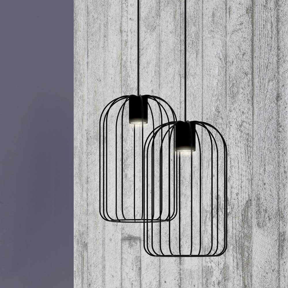 Lampa wisząca z matowego metalowego drutu o konstrukcji Made in Italy.