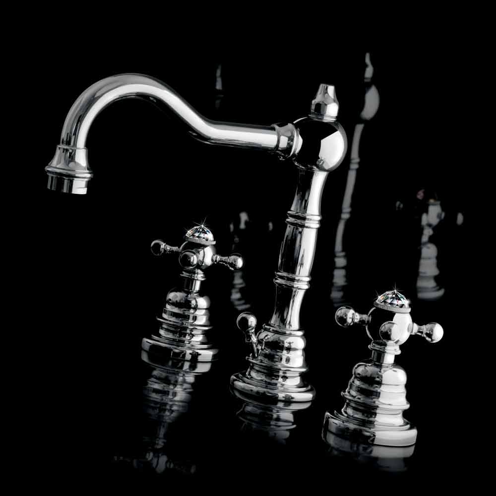 Designerska, trzyotworowa bateria zlewozmywakowa z chromowanego mosiądzu Made in Italy.