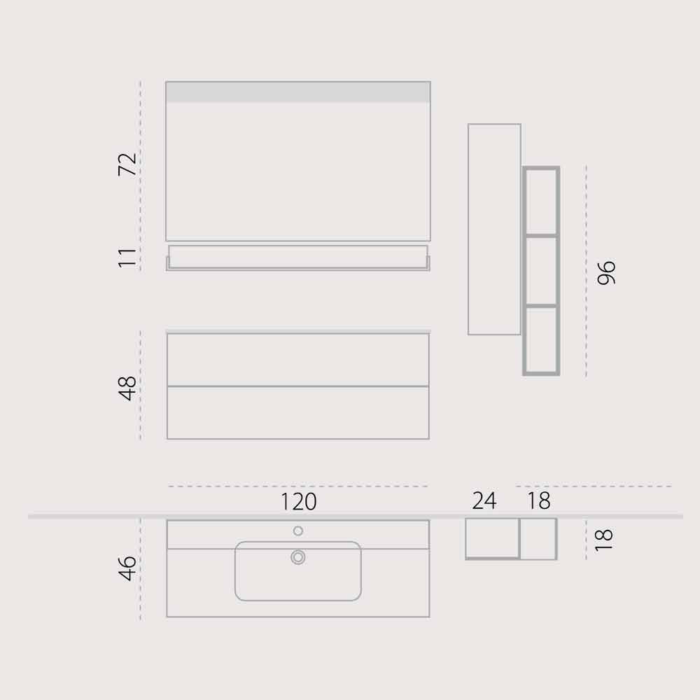 - prostokątne lustro ze zintegrowanym oświetleniem LED; D120xW72xP4 cm;