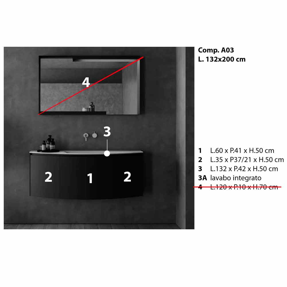 Zawieszona kompozycja łazienkowa, krzywoliniowa i o nowoczesnym designie, w całości wykonana we Włoszech.