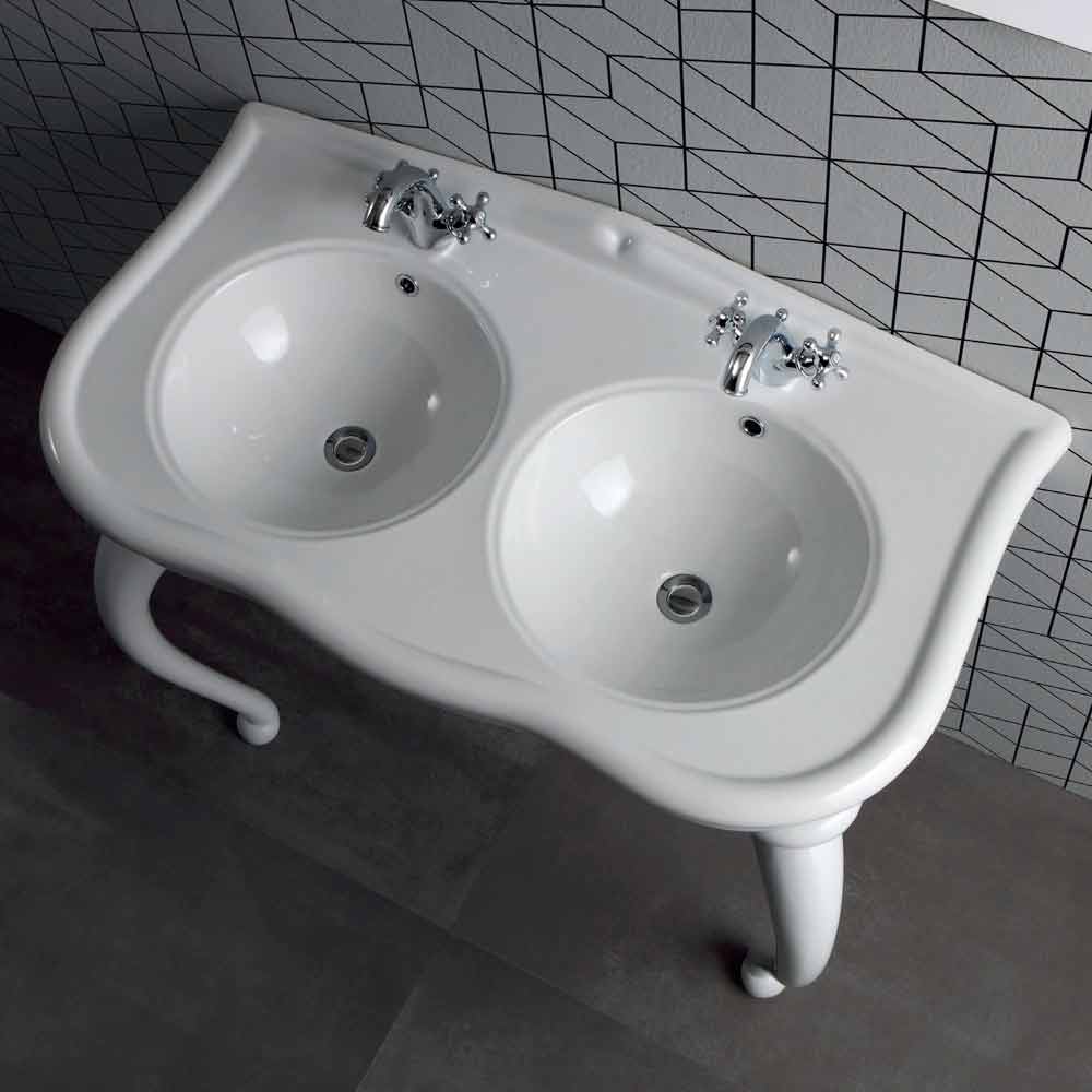 z nogami . Jest on wykonany w szklistej porcelanie , rodzaju glazurowanej ceramiki gotowanej w temperaturze 1200 ° . Jest to materiał odporny na działanie kwasów, ciepła, uderzeń i zadrapań . Jest higieniczny , a nawet czysty i nie znika z czasem.