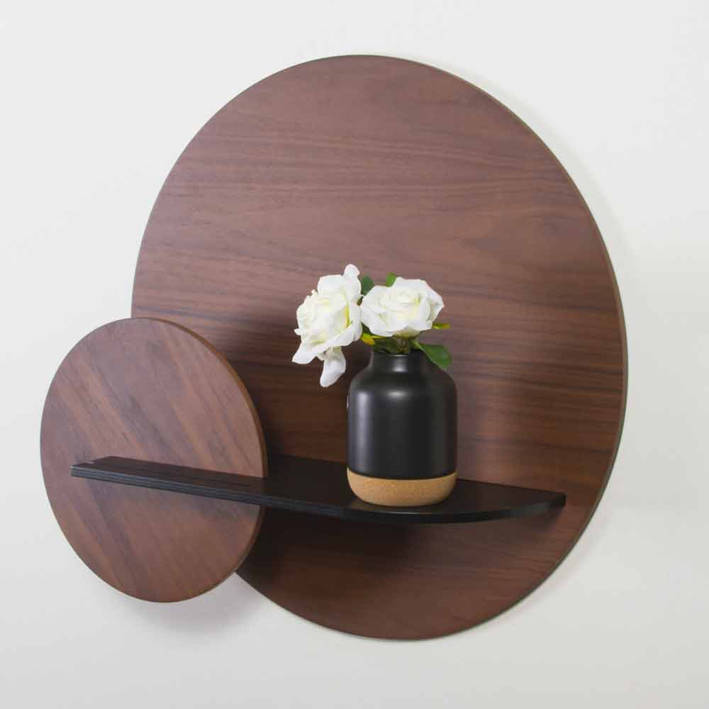 Ta półka składa się z 3 paneli ze sklejki , z których jeden w kolorze popiołu poplamionego na czarno przymocowany do ściany za pomocą metalowego wspornika, który działa jak prawdziwa powierzchnia nośna, oraz dwóch innych pionowo zamontowanych okrągłych paneli wykonanych z wykończeniem orzechowym , na których można je ustawić w 8 różnych konfiguracjach pozwalających na uzyskanie produktu dostosowanego do gustu i potrzeb. Aby jeszcze bardziej zwiększyć funkcjonalność tego wspaniałego artykułu, za mniejszym pionowym panelem znajduje się praktyczny otwór na kabel , idealny do ukrycia każdego rodzaju kabla lub ładowarki.