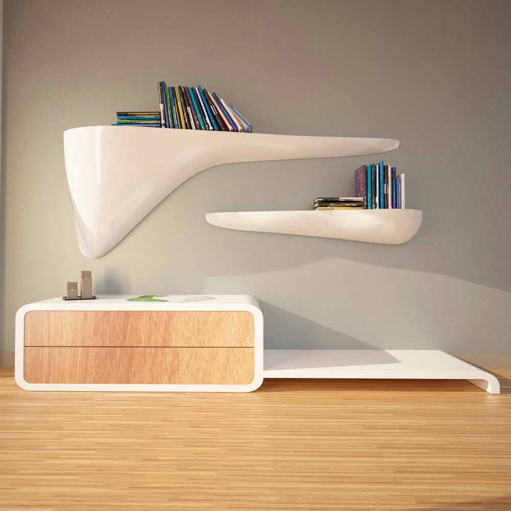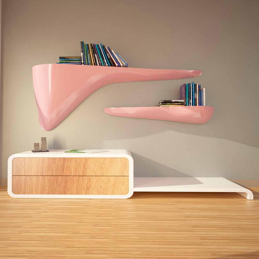 Sizzano to półka o szczególnym kształcie wykonana w całości z Solid Surface®; doskonale nadaje się do ozdabiania wnętrz z oryginalnością i klasą.