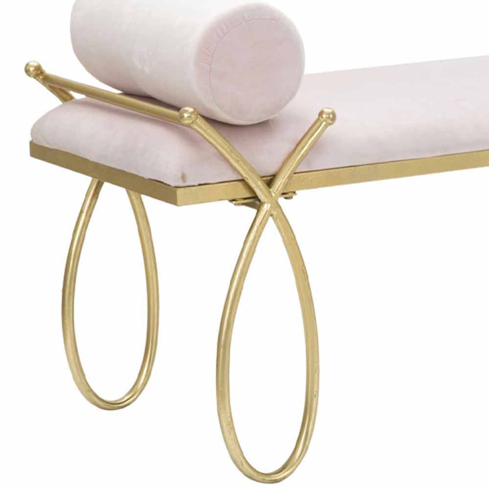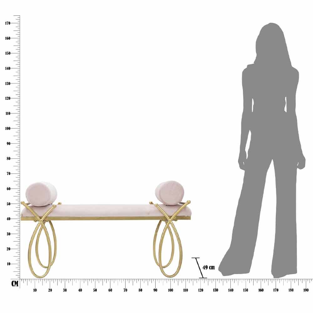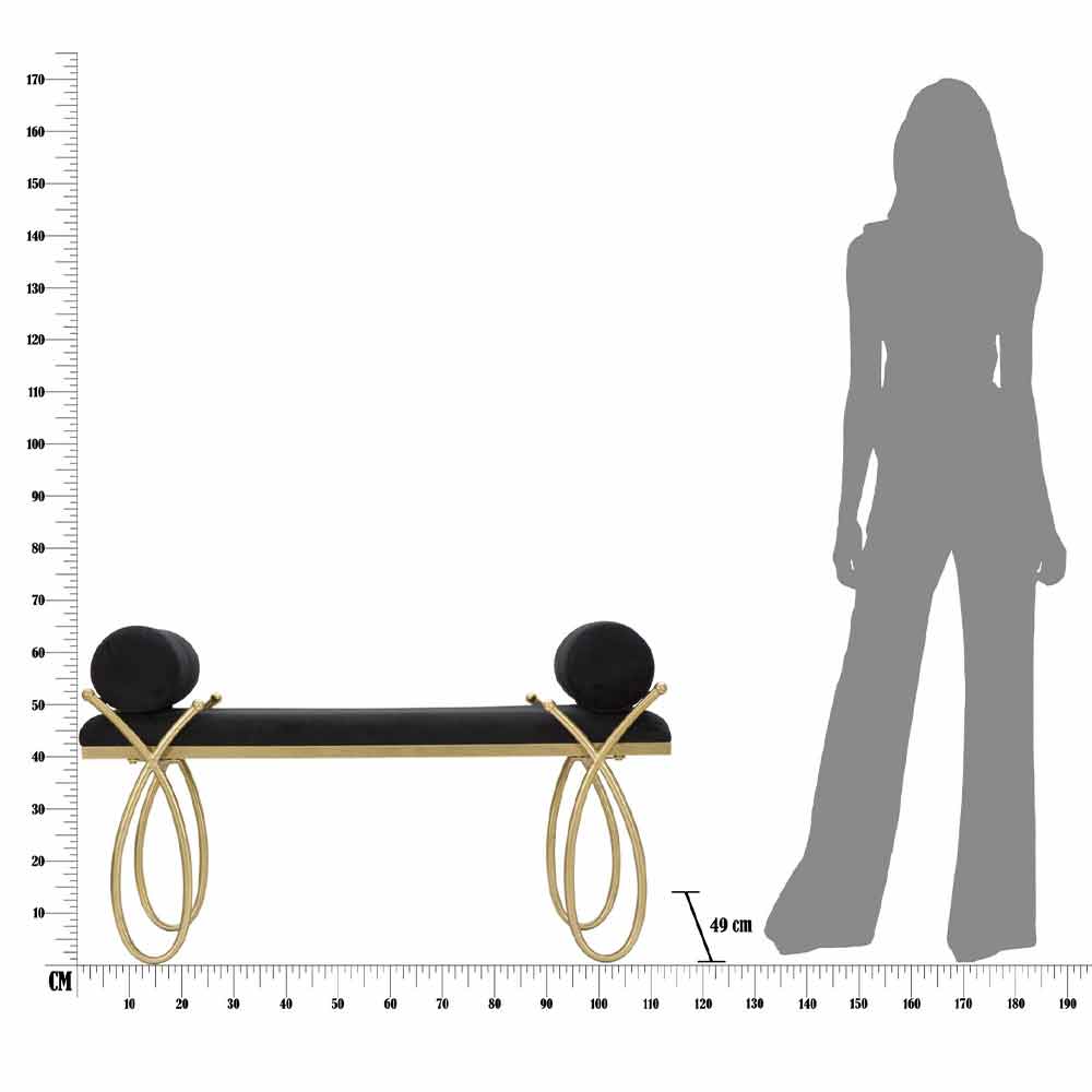 Prostokątna ławka 112,5X49X53 cm o nowoczesnym designie z żelaza, płyty MDF i tkaniny.