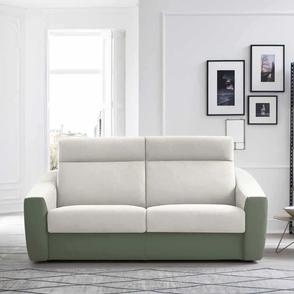 Nowoczesna podwójna rozkładana sofa z dwukolorowej tkaniny wyprodukowanej we Włoszech.
