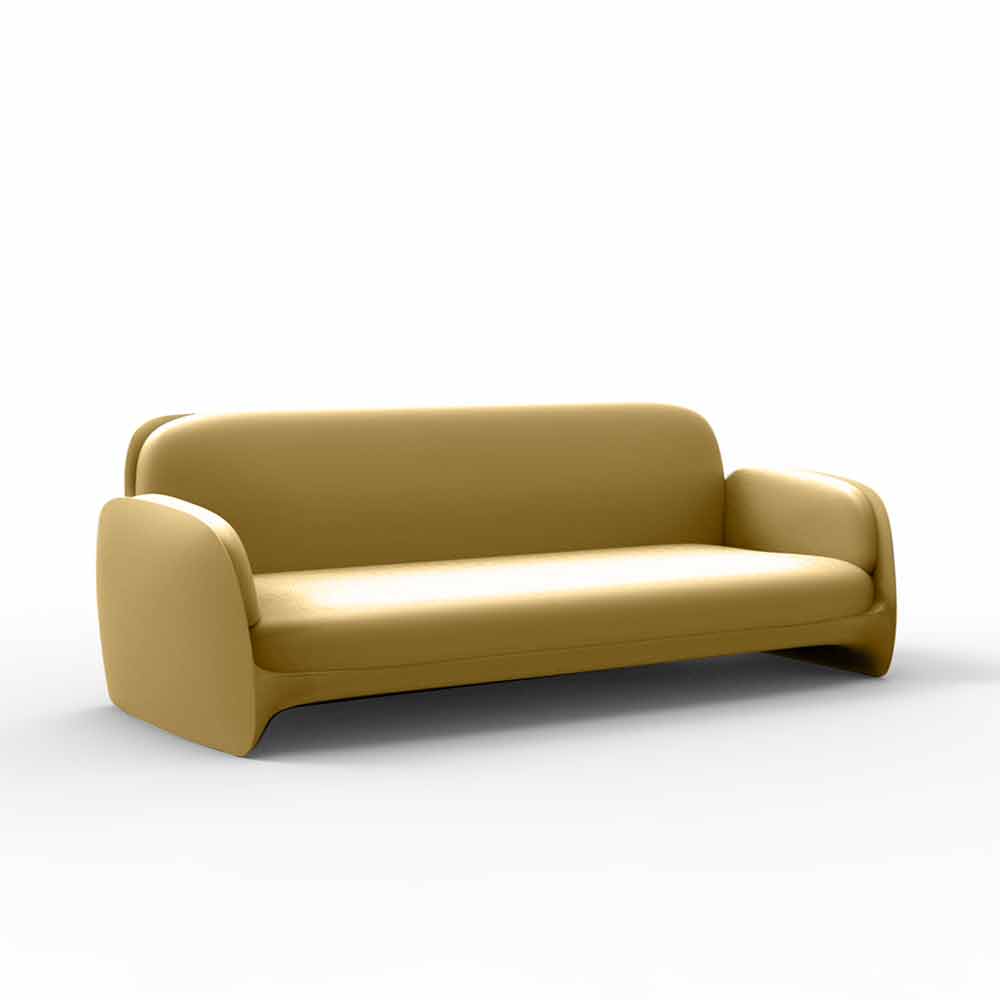 Sofa zewnętrzna ma kręte i eleganckie linie, użytym materiałem jest żywica polietylenowa, która czyni obiekt odpornym na wstrząsy, promienie UV i zmiany klimatu.