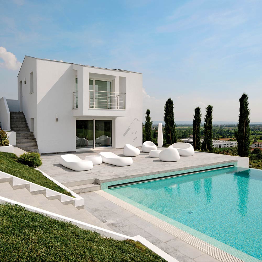 polietylenowi , dostępnemu w wersji nieprzezroczystej charakteryzującej się doskonałą odpornością na słońce, wstrząsy i ciepło lub w wersji odpornej i lakierowanej na wysoki połysk, która pozwala na tworzenie zabawy. światła i odbić. Dzięki unikalnemu i innowacyjnemu projektowi udaje mu się połączyć funkcjonalność i praktyczność, nie zaniedbując jednocześnie aspektu wizualnego i projektowego.