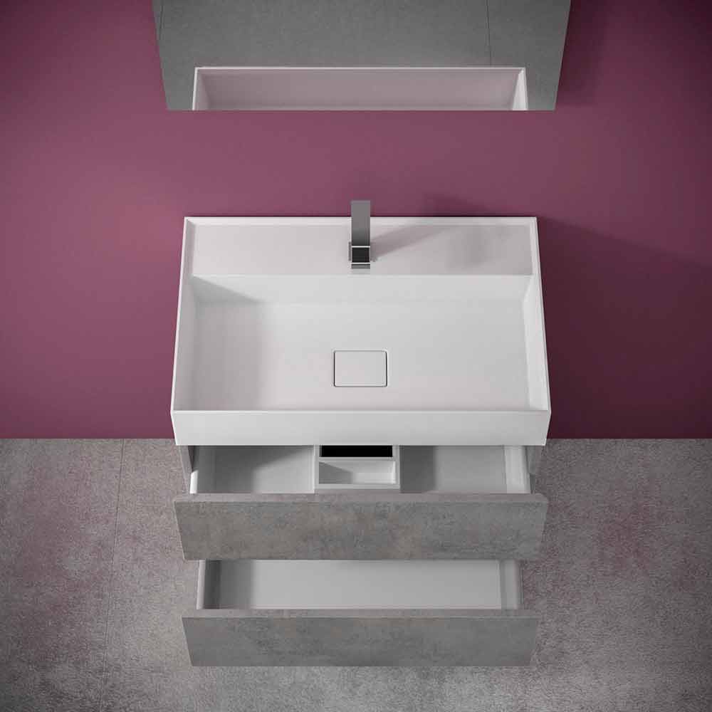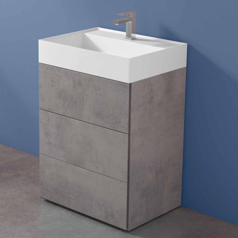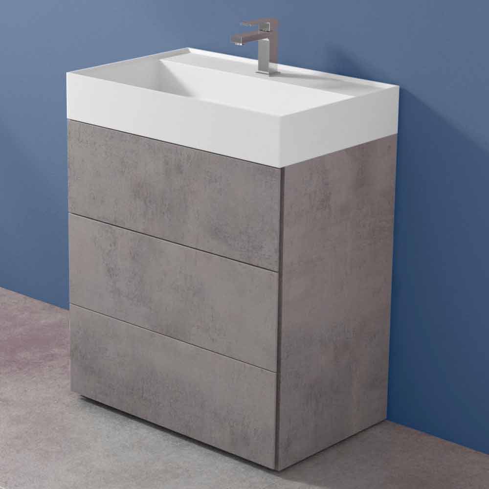 Meble łazienkowe z umywalką, nowoczesny design z laminatu z 3 szufladami w różnych kolorach i rozmiarach, wyprodukowane we Włoszech.
