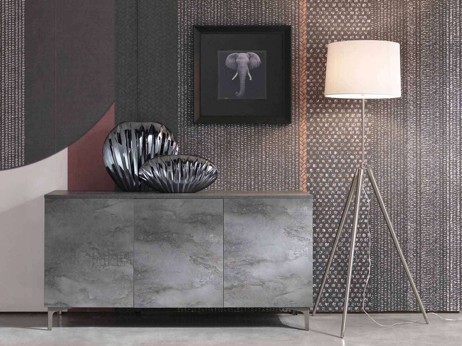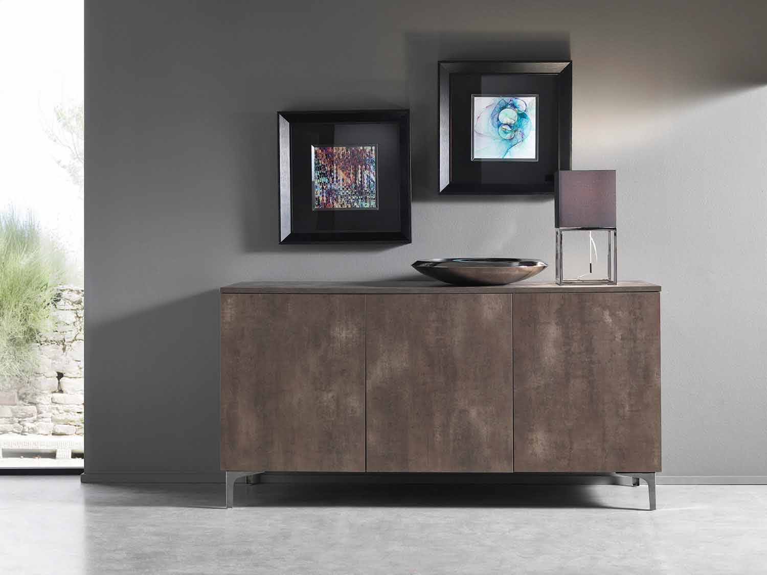 Szafka do salonu z trzema drzwiami, nowoczesny design z brązu lub szarego drewna melaminowego wyprodukowanego we Włoszech.