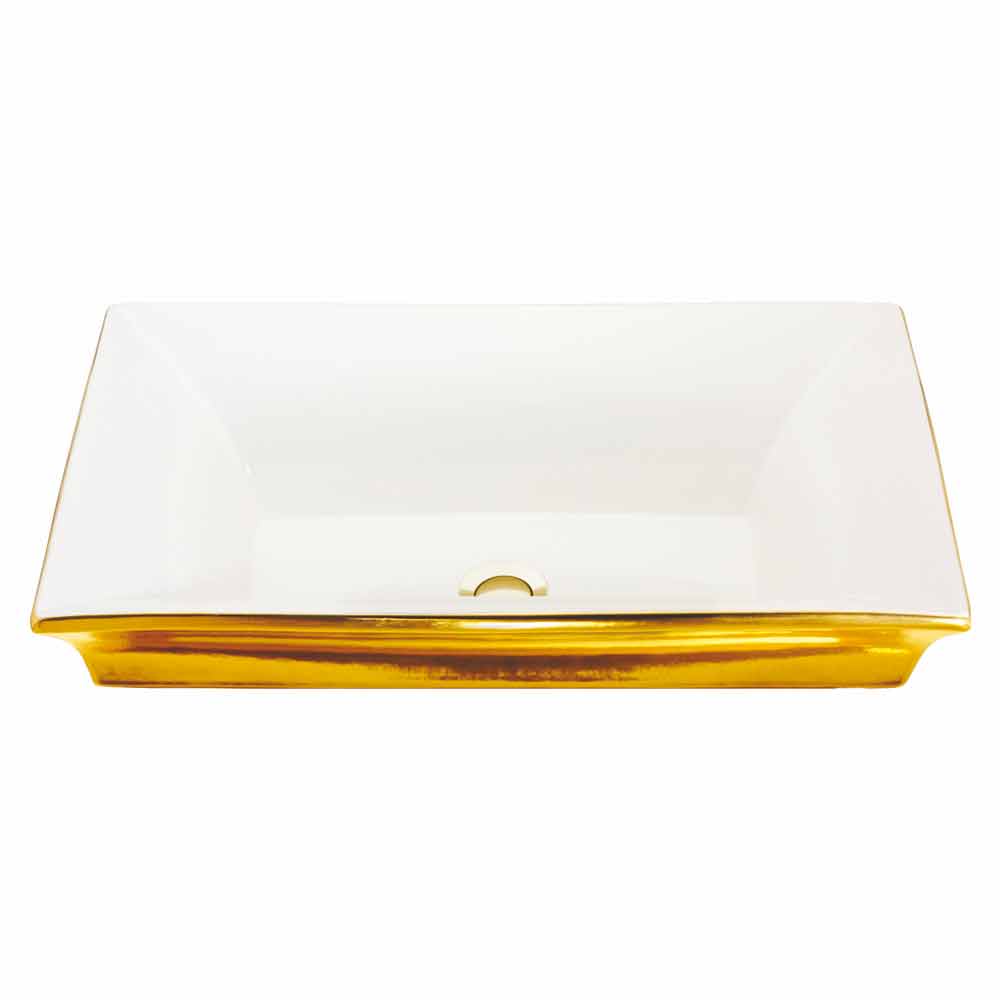 Zlewozmywak półzawieszany ręcznie we Włoszech w glinie ognistej z błyszczącymi białymi wnętrzami i uszlachetniony 24-karatowym złotem na zewnątrz.