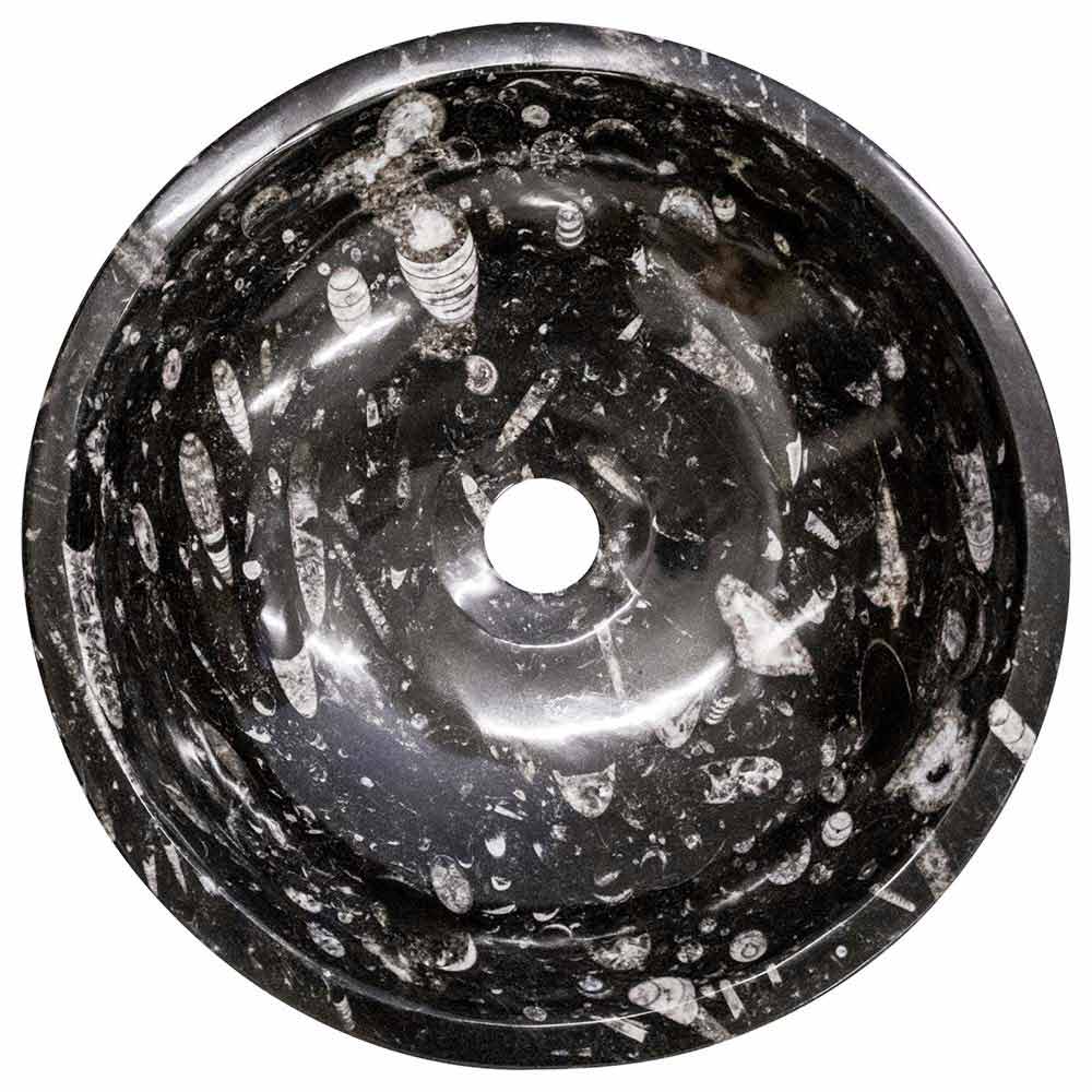 Designerska umywalka nablatowa z marmuru ze skamieniałościami, unikat.