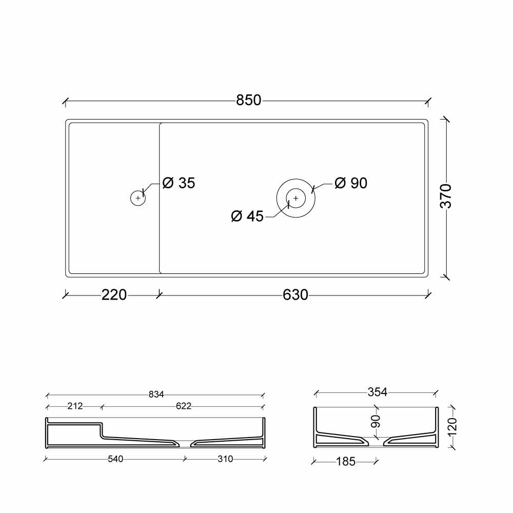 Opcjonalnie możliwe jest wykonanie okrągłego mosiężnego syfonu z chromowanym wykończeniem, a także umywalki Hide 85x37 z otworem lub bez otworu na baterie, aby uzyskać więcej informacji prosimy o kontakt pod adresem clienti@viadurni.it .