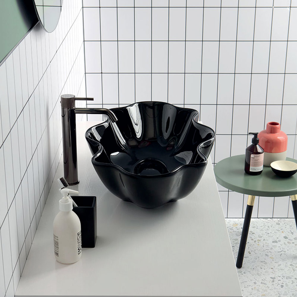Kreatywny kształt reprezentuje jego prawdziwą siłę i sprawia, że jest to odpowiedni pomysł dla tych, którzy lubią wyposażać swoje przestrzenie w ekscentryczne akcenty kolorystyczne i mocny efekt wizualny w awangardowej łazience.