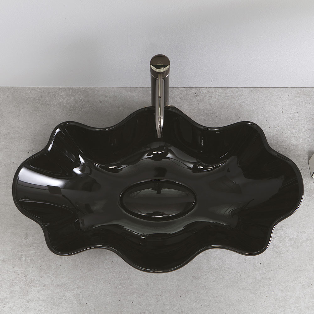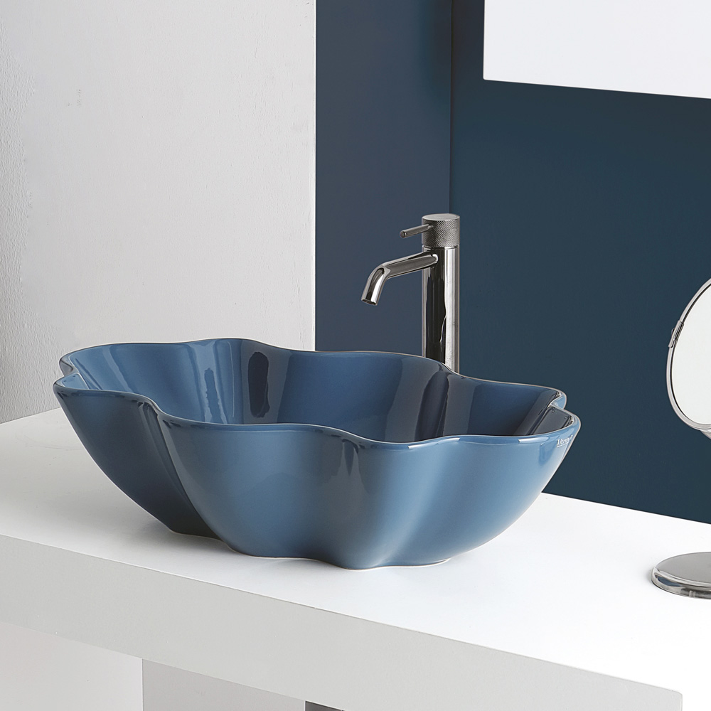 Umywalka profilowana nablatowa do łazienki z kolorowej ceramiki o błyszczącym wykończeniu wyprodukowane we Włoszech przez rzemieślniczą produkcję . Oryginalny i urzekający design, który wynika z chęci zaproponowania rozwiązań wyposażenia wnętrz dalekich od klasycznych produktów serii. Rezultatem jest umywalka o ekskluzywnej estetyce, która zwraca na siebie uwagę swoją imponującą, nowoczesną osobowością i szczególnym kształtem przypominającym muszlę.