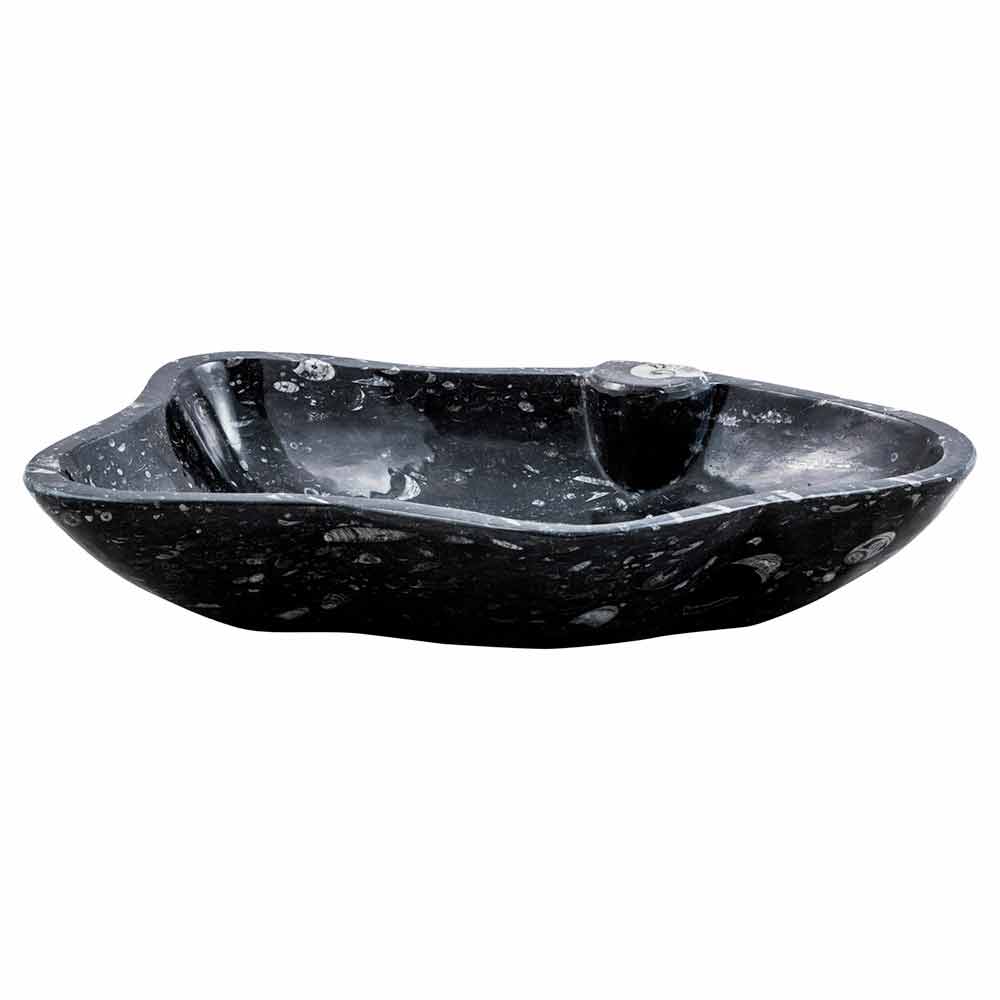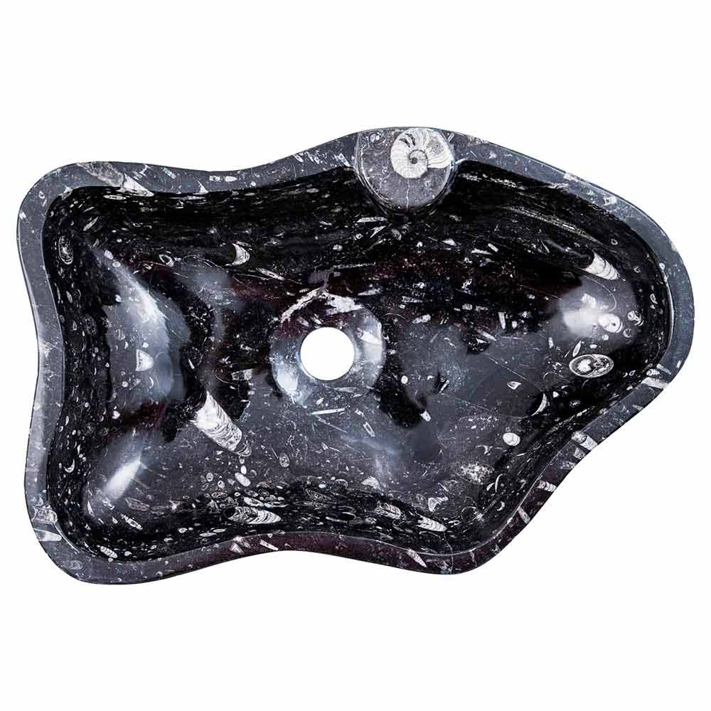 Fascynujące materiały i niezwykłe kształty charakteryzują tę umywalkę, wykonaną w całości ręcznie z marmuru, z osadzonymi w środku skamieniałościami sprzed milionów lat.