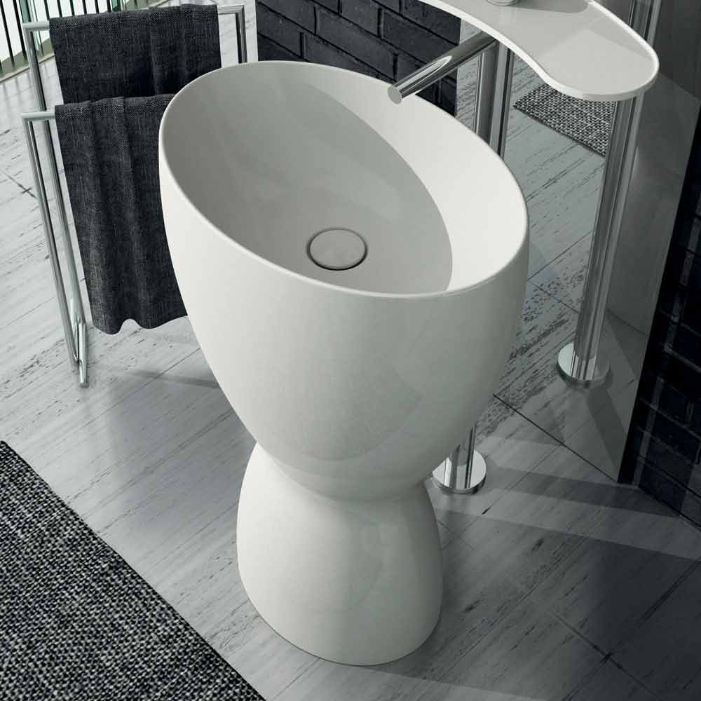 Design wolnostojąca umywalka w łazience w ceramice wykonana we Włoszech, Basile