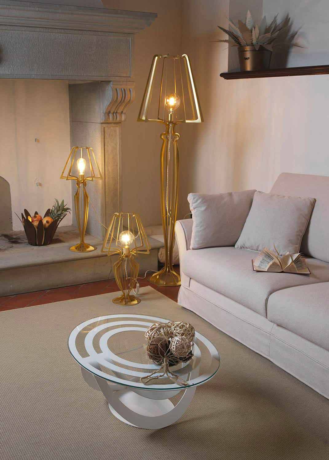 Lampa podłogowa Giunone charakteryzuje się wyrafinowanymi i wyszukanymi liniami, które doskonale integrują się z każdym stylem otoczenia, od klasycznego po nowoczesny.