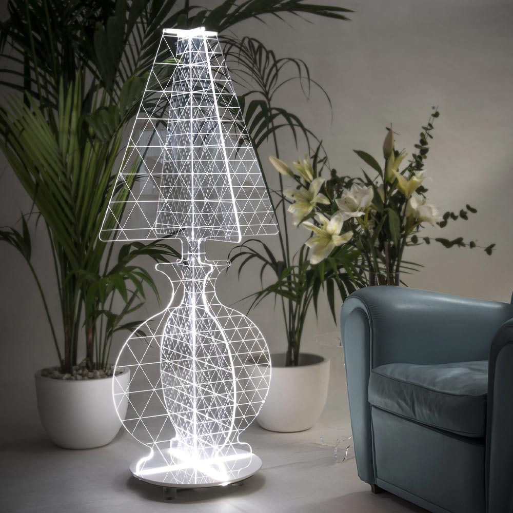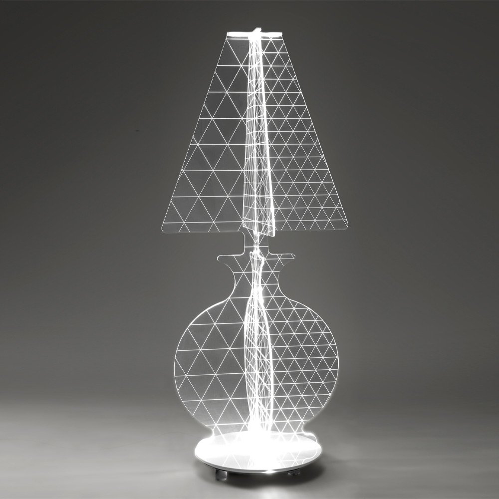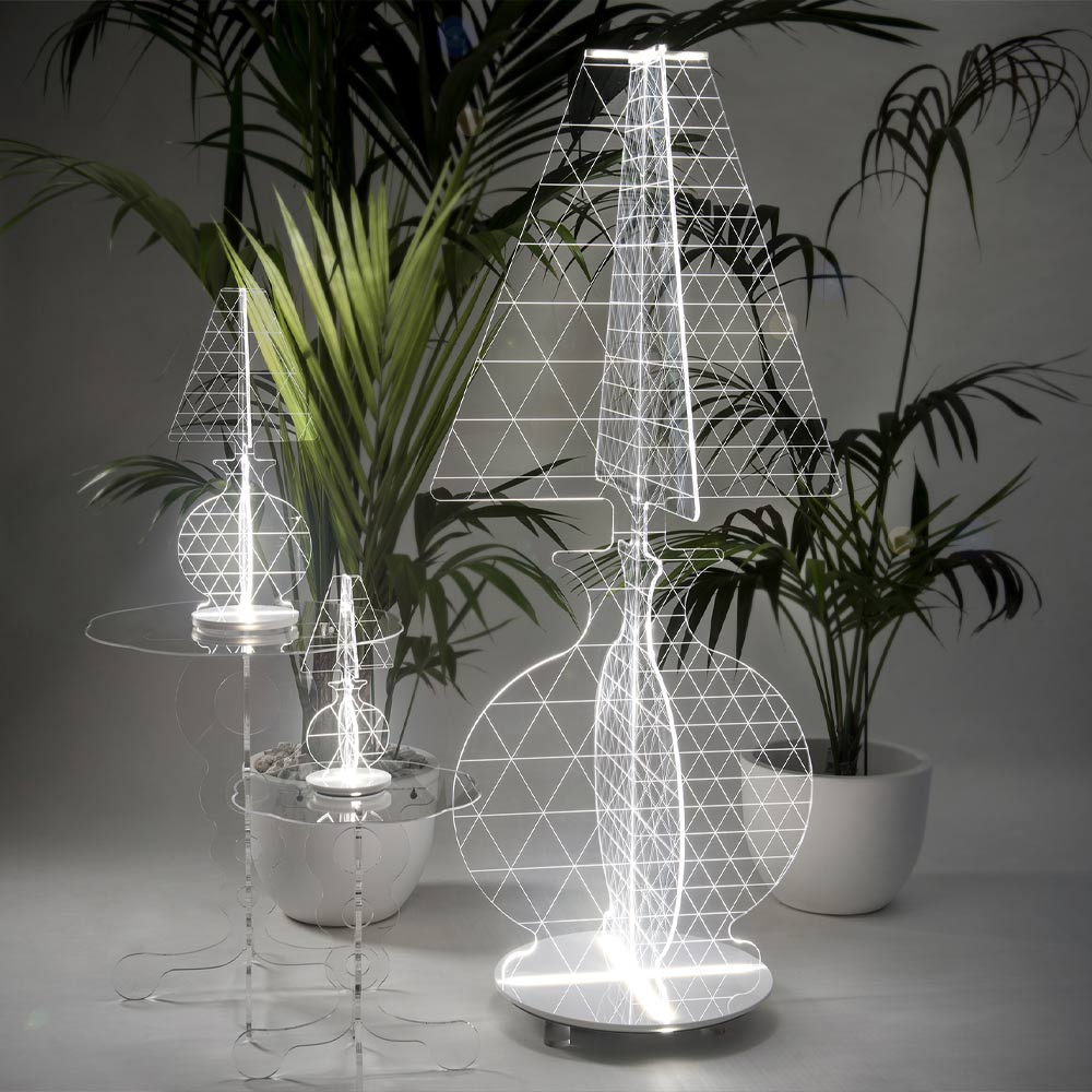 Znakowana laserowo lampa stołowa z pleksiglasu w 3 rozmiarach wyprodukowana we Włoszech.